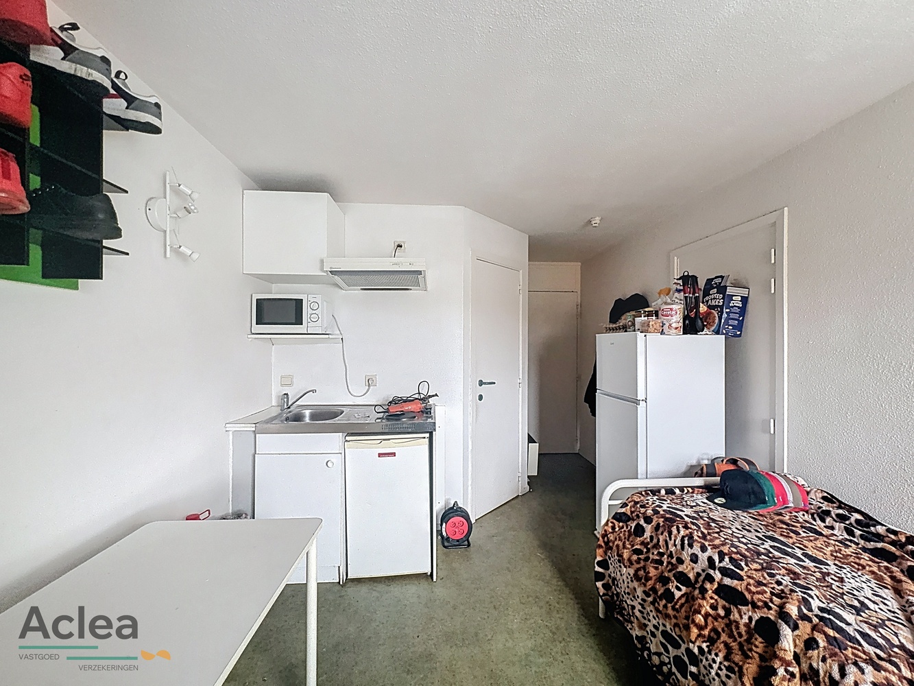 Deze compacte maar praktische studio is ideaal voor een student of alleenstaande die op zoek is naar een eigen plekje in Gent. De studio beschikt over een aparte badkamer met lavabo en bad. De leefruimte doet dienst als eetkamer en slaapruimte: er is plaats voor een eettafel en een bed. De studio is eenvoudig ingericht, maar biedt alles wat je nodig hebt op een beperkte oppervlakte. Er is een parkeerplaats op een afgesloten parking.