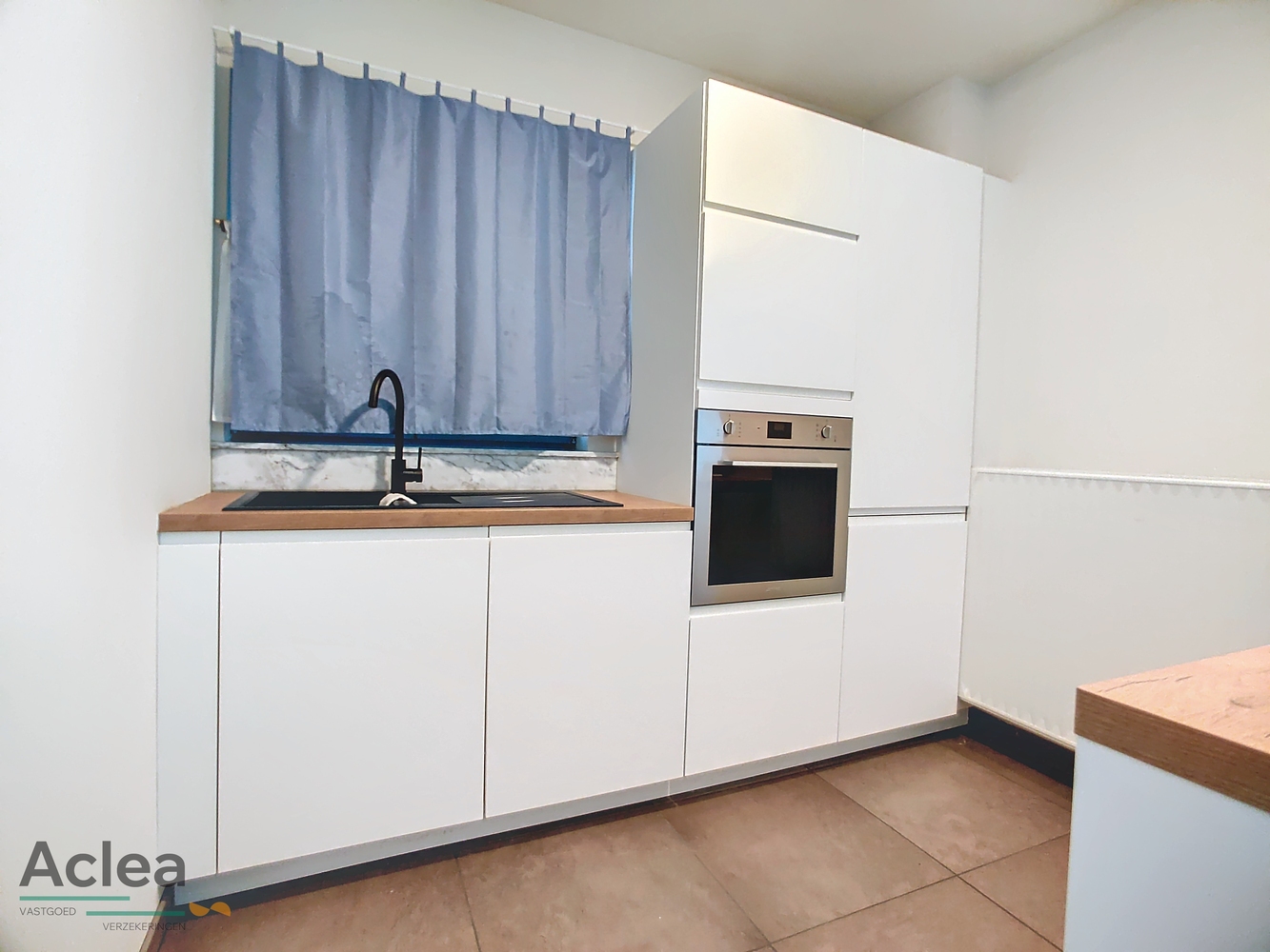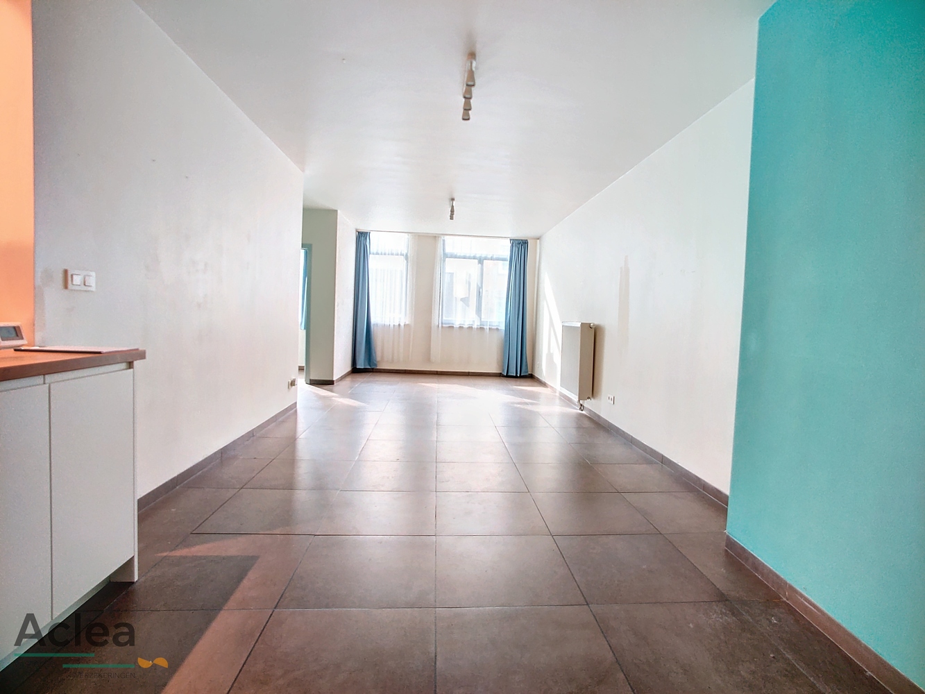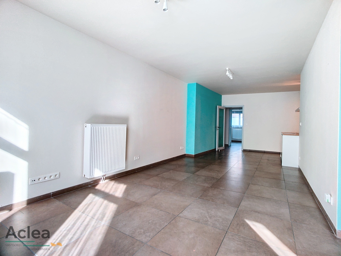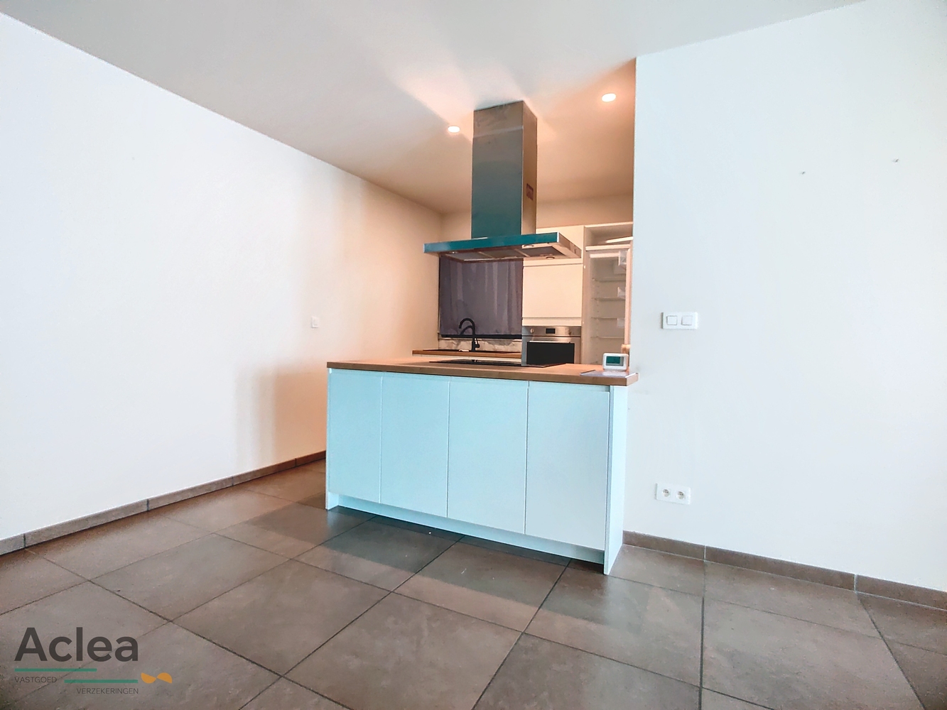 inkom, living met open ingerichte keuken, 2 slaapkamers, badkamer met inloopdouche en lavabomeubel, apart toilet, bijkeuken, garage met onmiddellijke toegang tot het appartement en zonneterras achteraan (wordt nog afgewerkt)