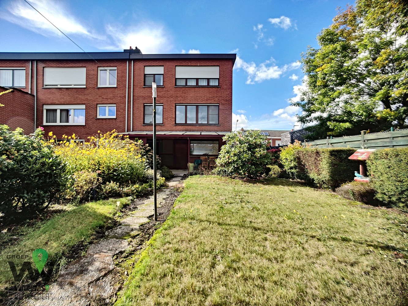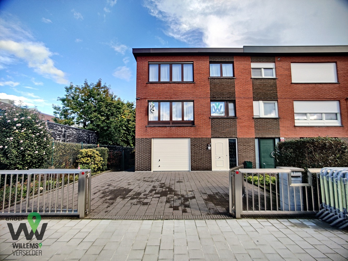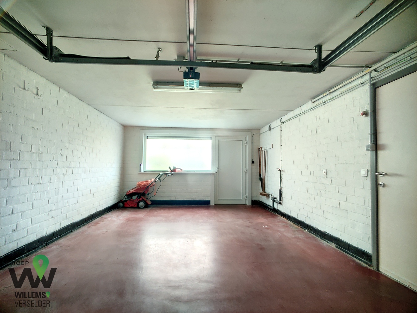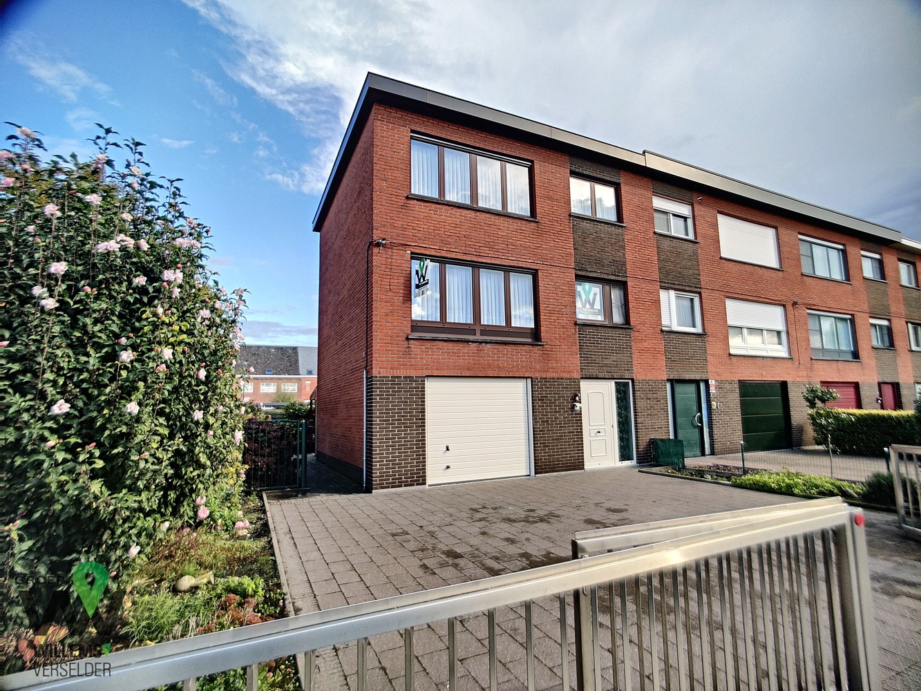 op het gelijkvloers : inkomhal, wasplaats, ruime garage, overdekt terras, gezellige zonnige tuin en oprit met plaats voor twee auto’s