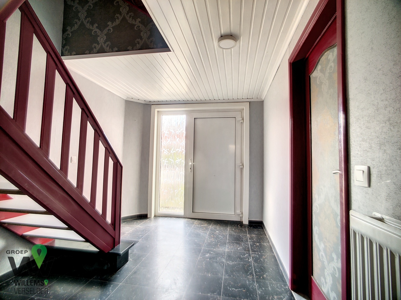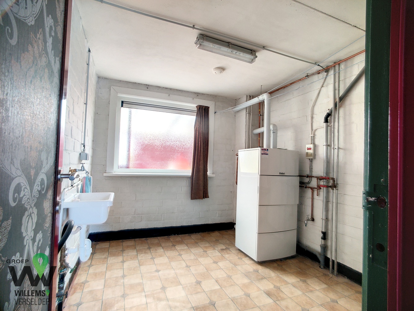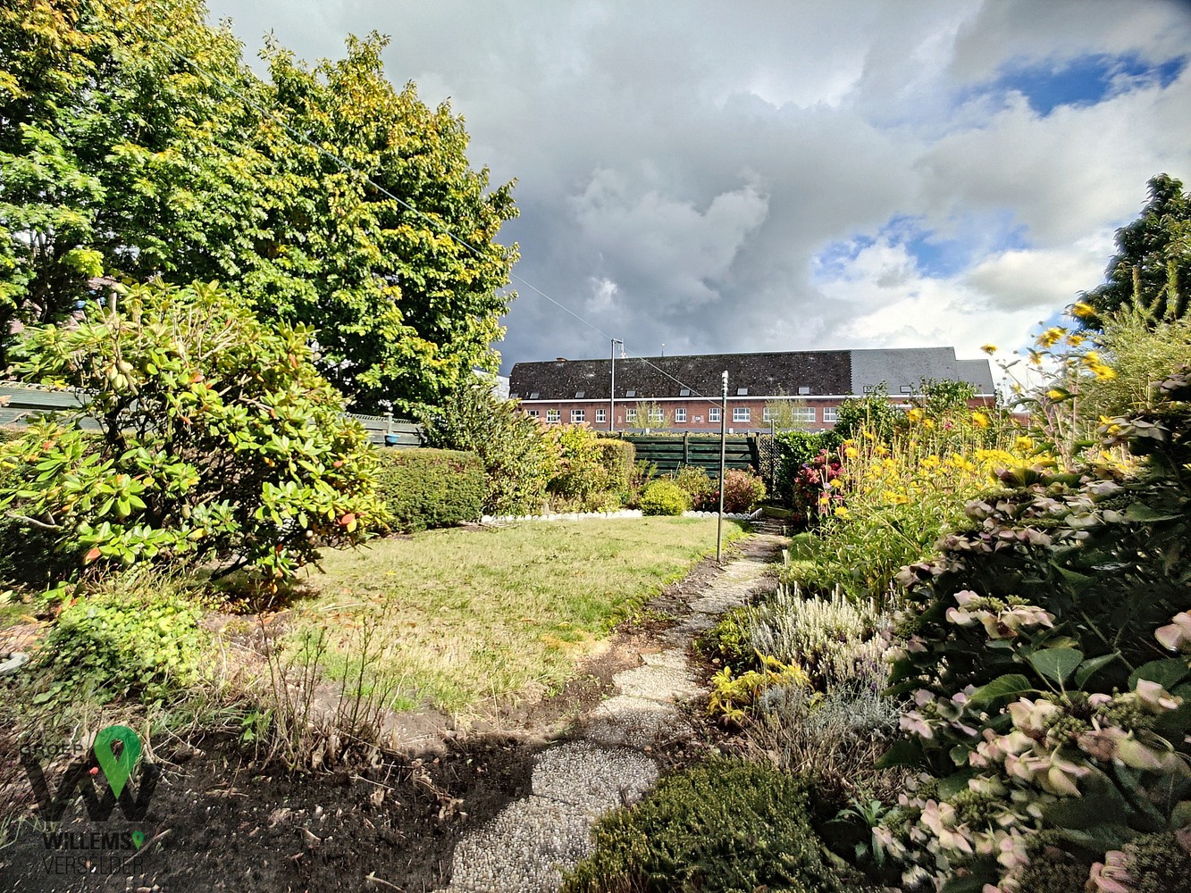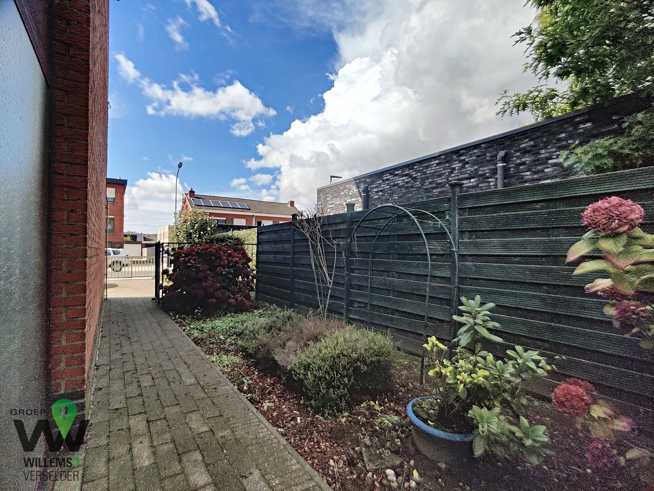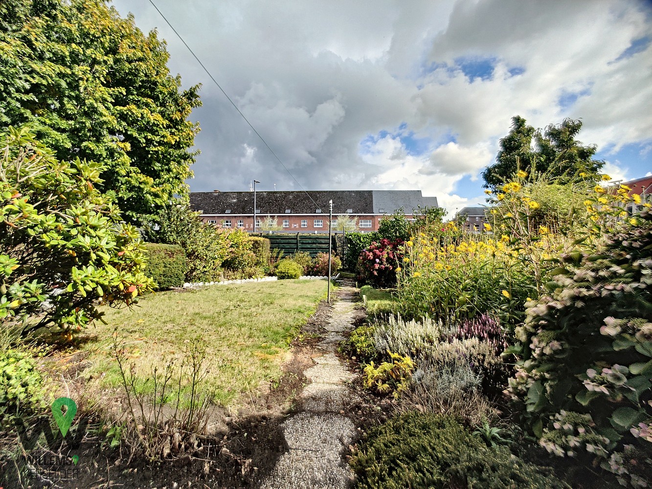 op het gelijkvloers : inkomhal, wasplaats, ruime garage, overdekt terras, gezellige zonnige tuin en oprit met plaats voor twee auto’s