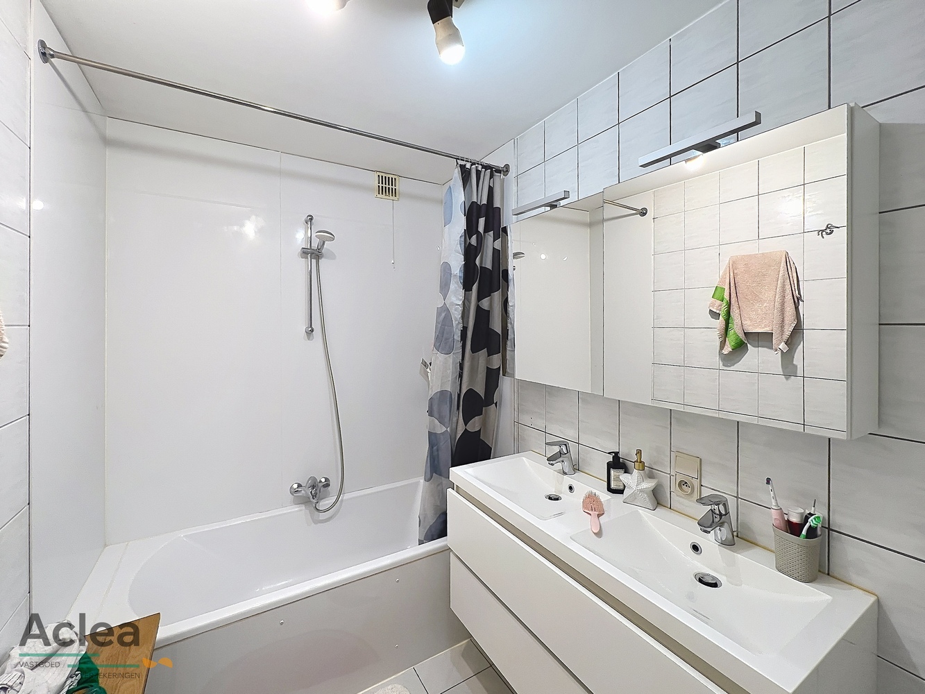 – badkamer bestaande uit lavabomeubel en ligbad met douchemogelijkheid
