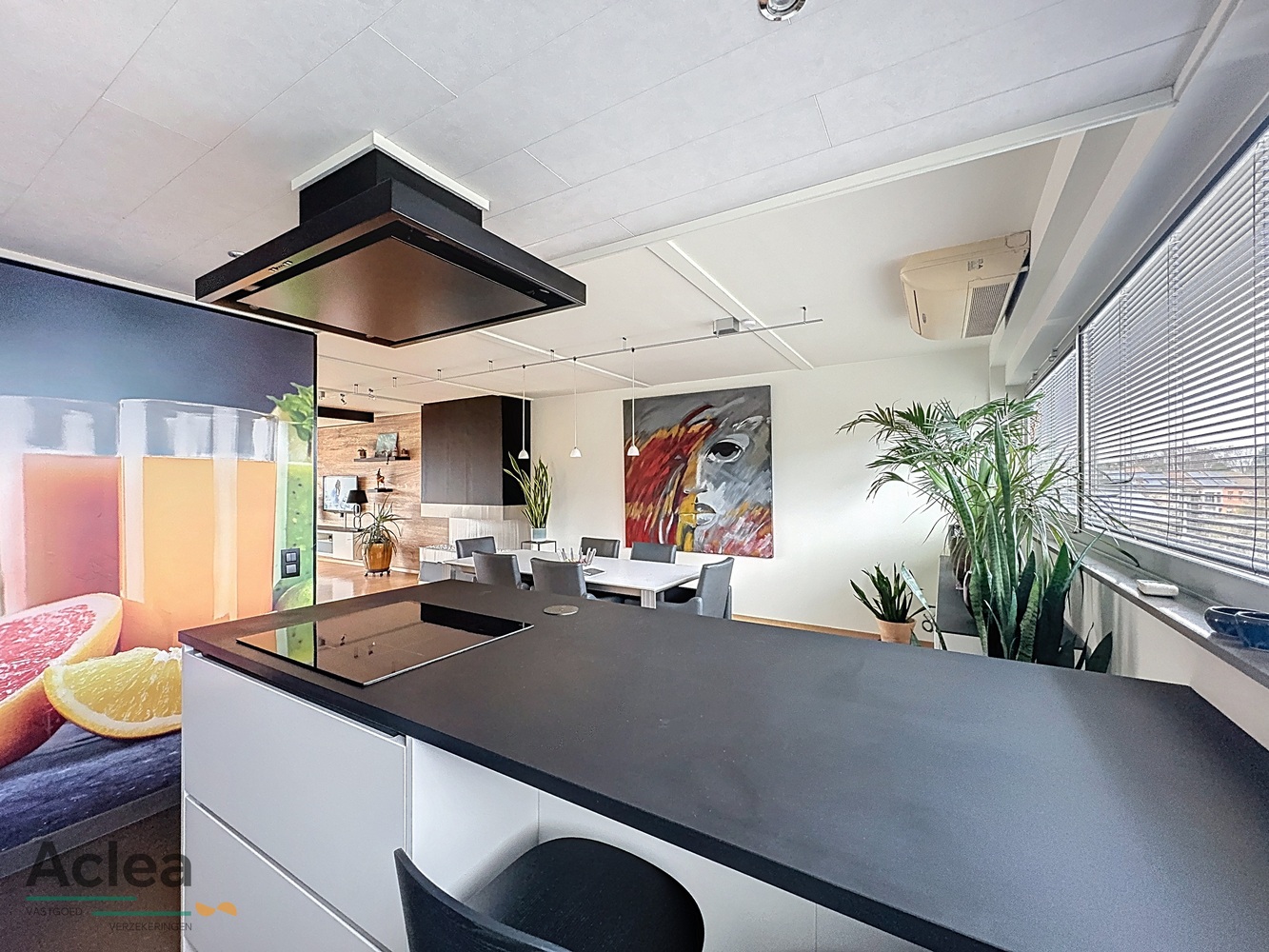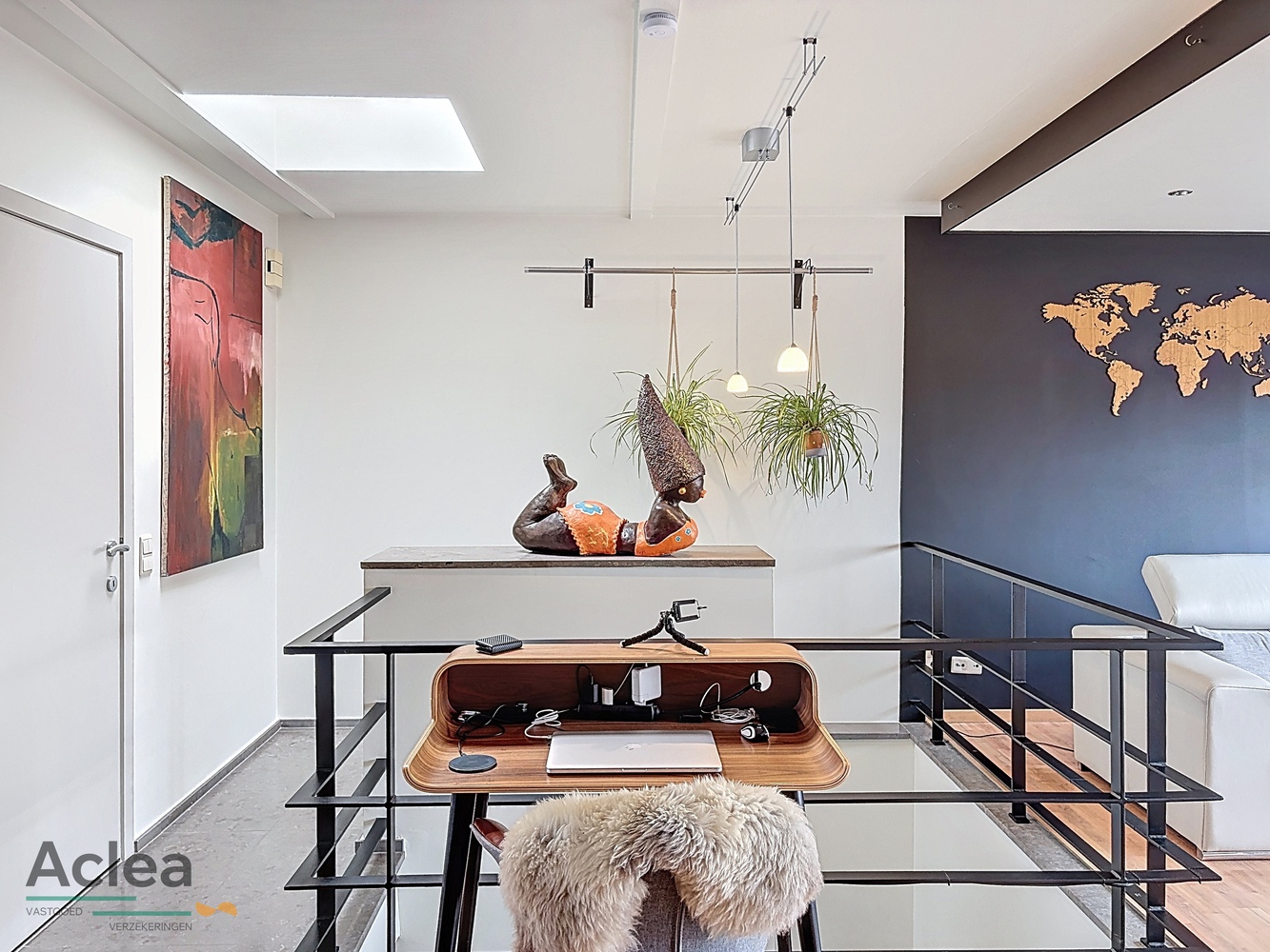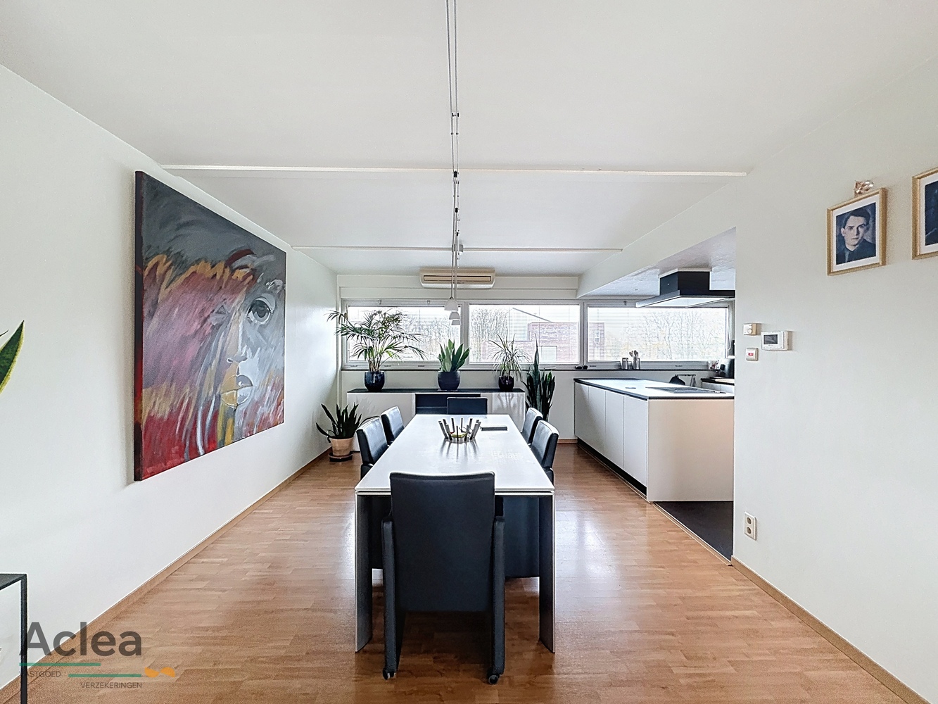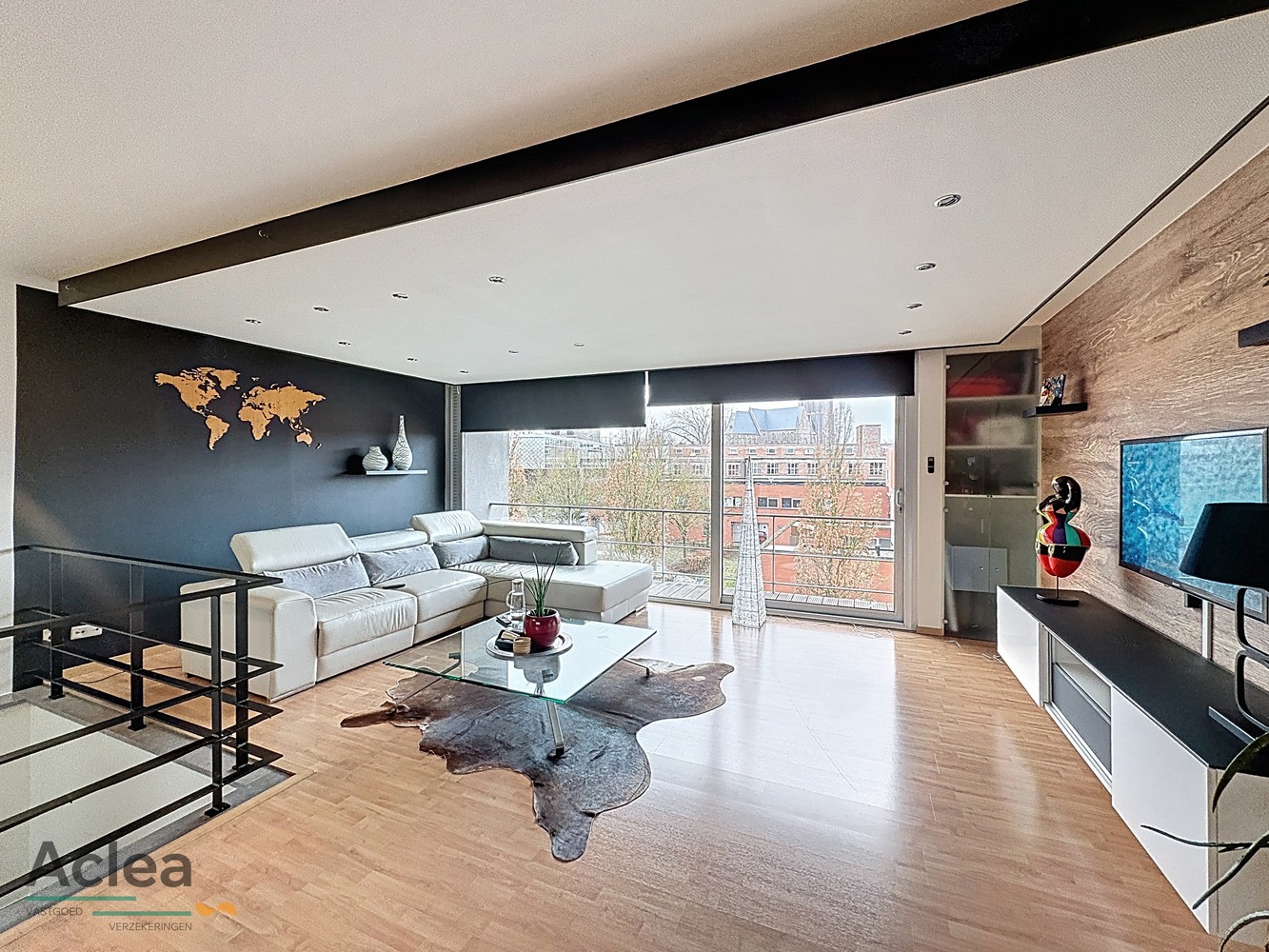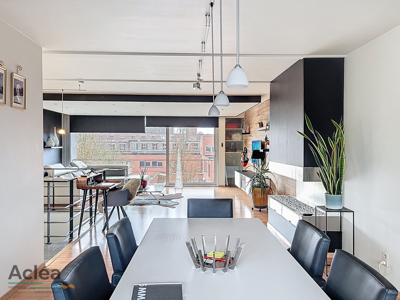 Een verdieping hoger bevindt zich de prachtige, zeer ruime leefruimte. Dankzij de grote raampartijen geniet u hier van een open en luchtig gevoel. De woonkamer sluit naadloos aan op de moderne, volledig uitgeruste keuken met alle nodige toestellen. Vanuit de woonkamer heeft u bovendien toegang tot een extra balkon met een leuk uitzicht op de kerktoren van Eeklo. Tevens is er ook een afgesloten garage aanwezig, inclusief in de huurprijs.
