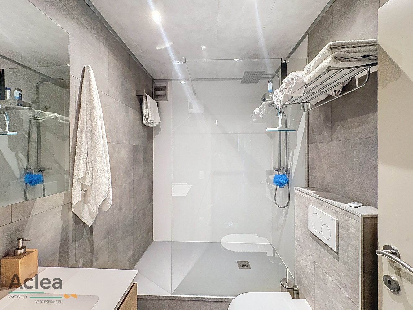 Bij het binnenkomen treft u twee slaapkamers, ideaal voor wie graag een extra logeer- of werkruimte heeft. De vernieuwde badkamer beschikt over een douche, lavabo en een toilet. Via één van de slaapkamers heeft u rechtstreeks toegang tot een aangenaam, ruim terras – perfect om tot rust te komen in de buitenlucht.