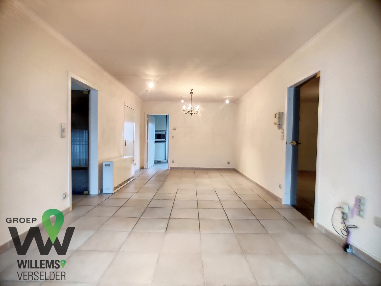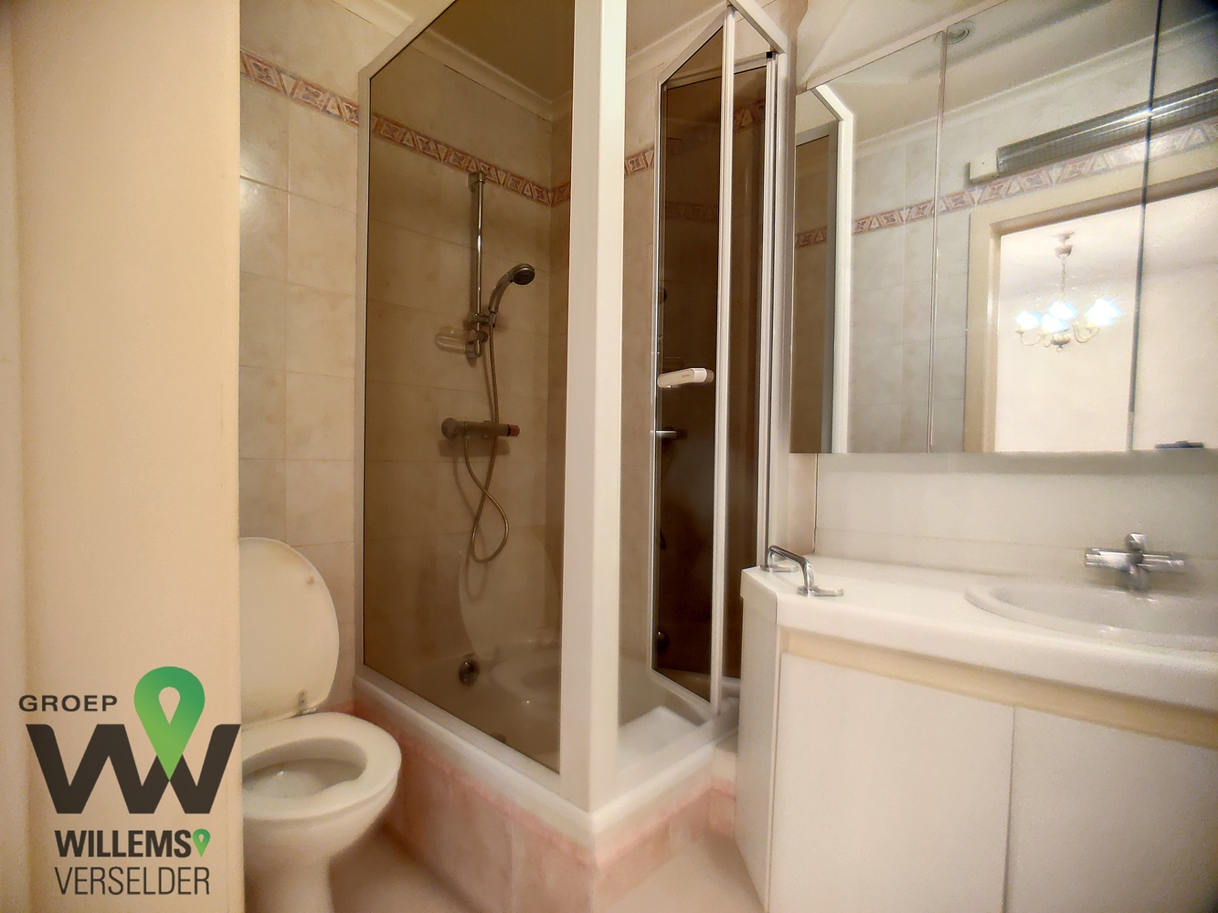 inkom met ingemaakte kast, living met terras, ingerichte keuken, 1 slaapkamer aansluitend op het terras en 1 slaapkamer met ingemaakte kast aansluitend op de badkamer met toilet, lavabomeubel en douche