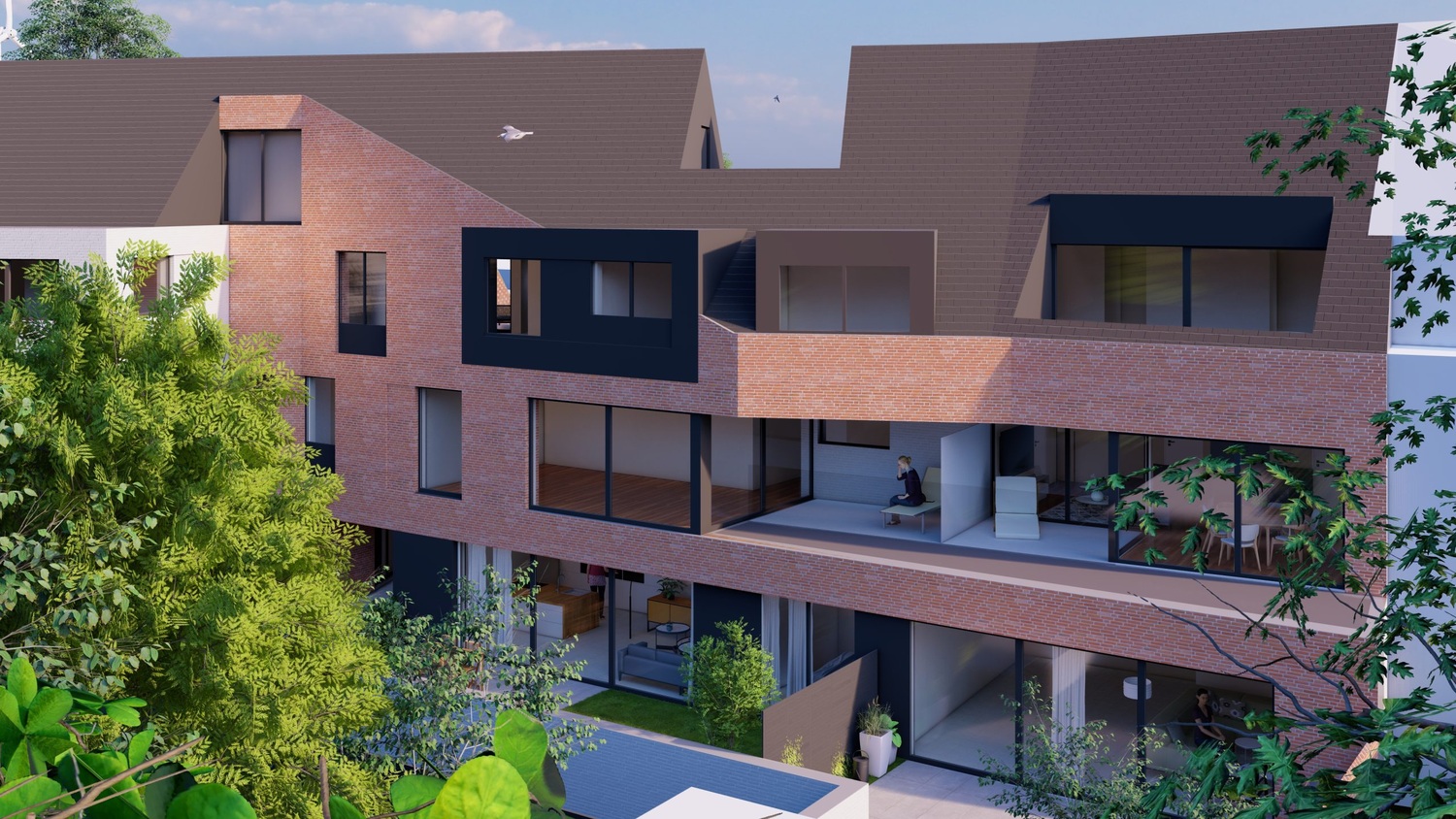 Het project beschikt over een ondergrondse verdieping met 14 parkeerplaatsen en een ruime fietsenstalling. Zo bent u zeker van een veilige en praktische plek voor uw auto en fiets. Daarnaast biedt de gemeenschappelijke tuin van 300m² een oase van rust. Hier kunt u ontspannen of gewoon genieten van het buitenleven samen met uw buren.