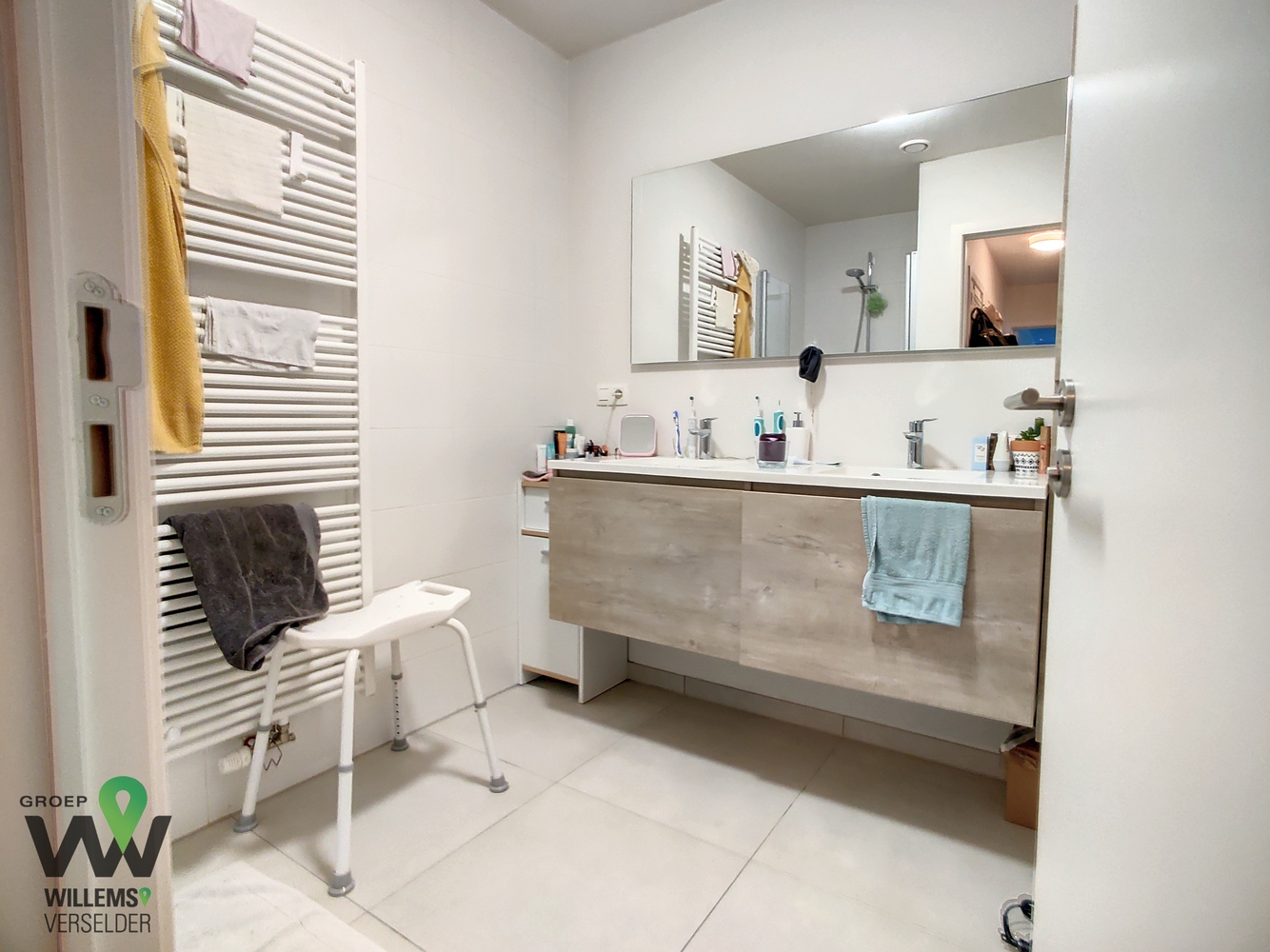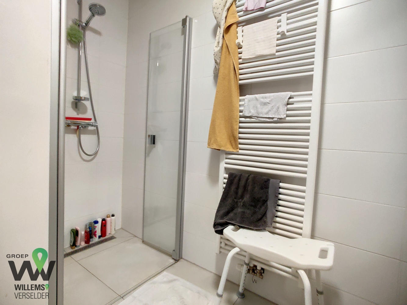 – moderne badkamer met badkamermeubel en douche