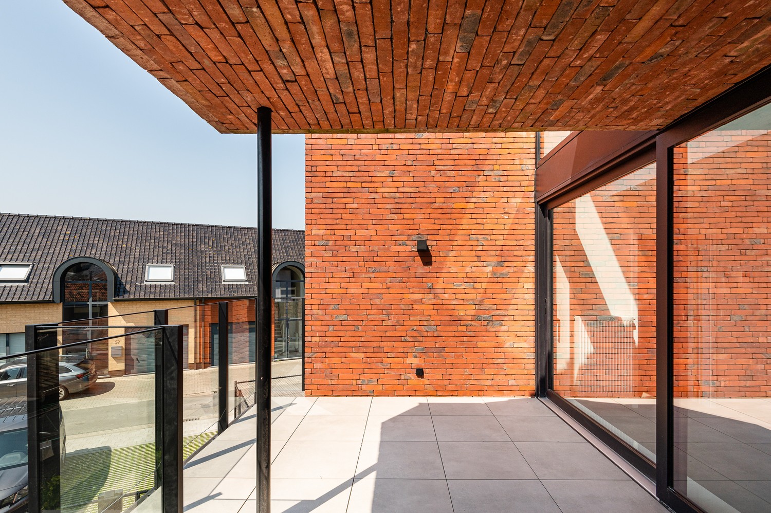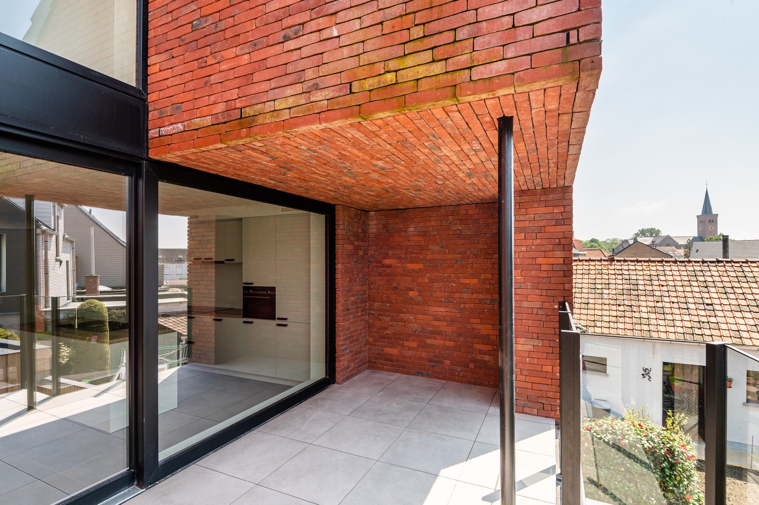 Dankzij de 3 gevels die deze hoekresidentie rijk is, baden de appartementen in licht mede door de grote raampartijen die voorzien zijn om een aangename levenskwaliteit te bevorderen. Er werd gekozen voor strak metselwerk in combinatie met crépi en glazen balustrades.