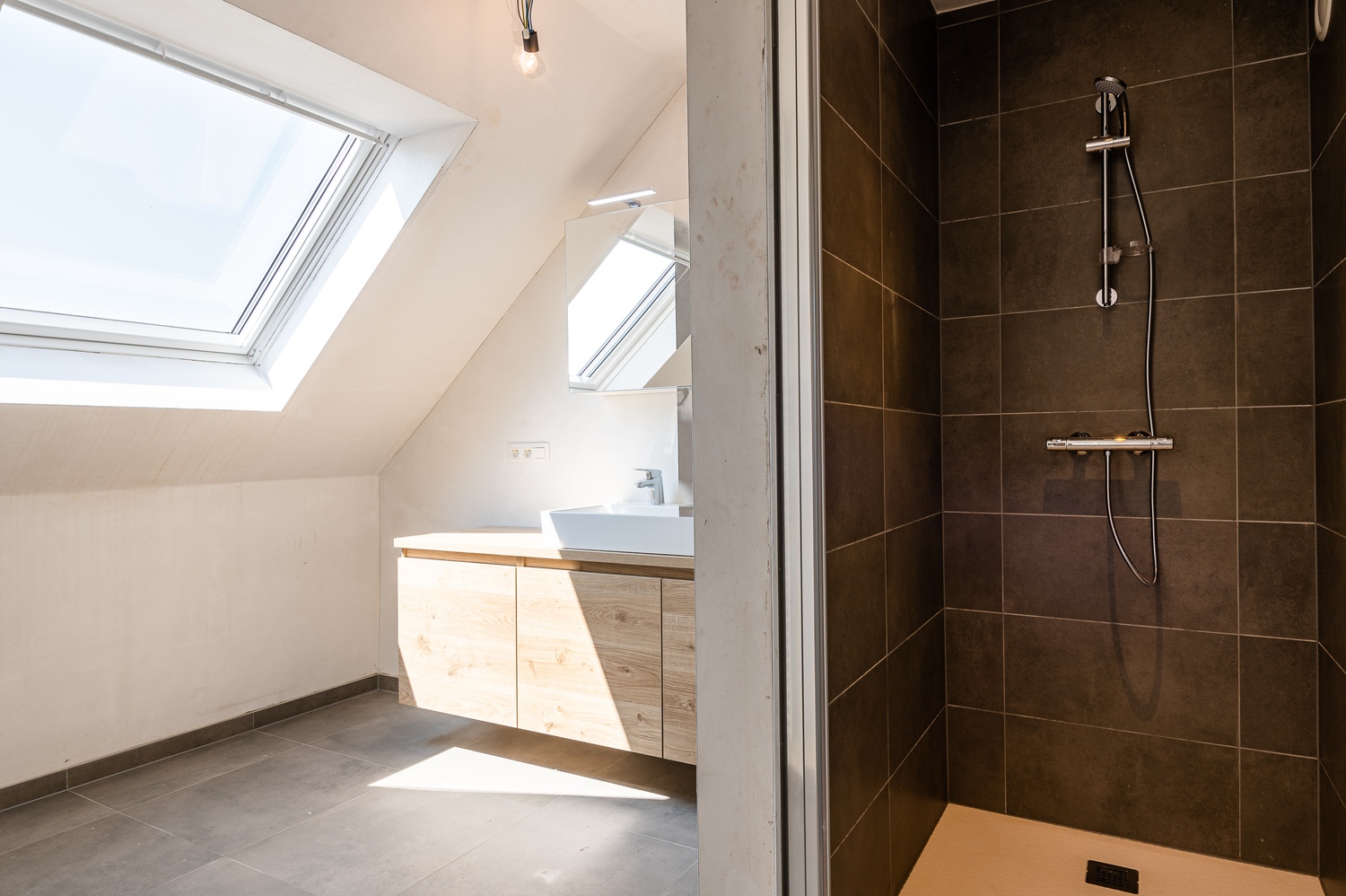 – badkamer met douche en badkamermeubel
