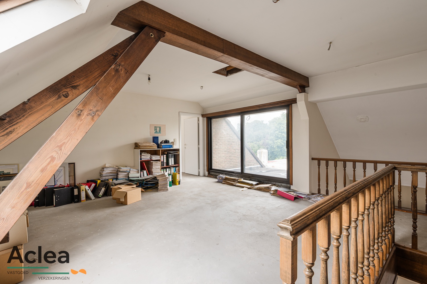 De woning beschikt over 4 ruime slaapkamers, waarvan 3 op de eerste verdieping en nog een af te werken ruime slaapkamer op de tweede verdieping. De grote zolder biedt nog een enorm potentieel voor verdere uitbreiding, hobbyruimte of een vijfde slaapkamer. De royale leefruimte met parketvloer en open haard zorgt voor een warme en gezellige sfeer, perfect voor ontspanning na een drukke werkdag. Aan de voorzijde van de woning vindt u een professionele praktijkruimte met een wachtzaal, ideaal voor vrije beroepen. Dankzij de aparte ingang kunnen werk en privéleven op een discrete manier gescheiden blijven.