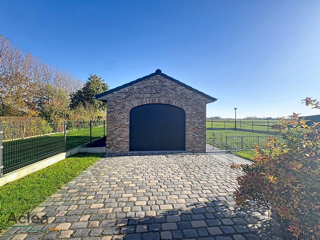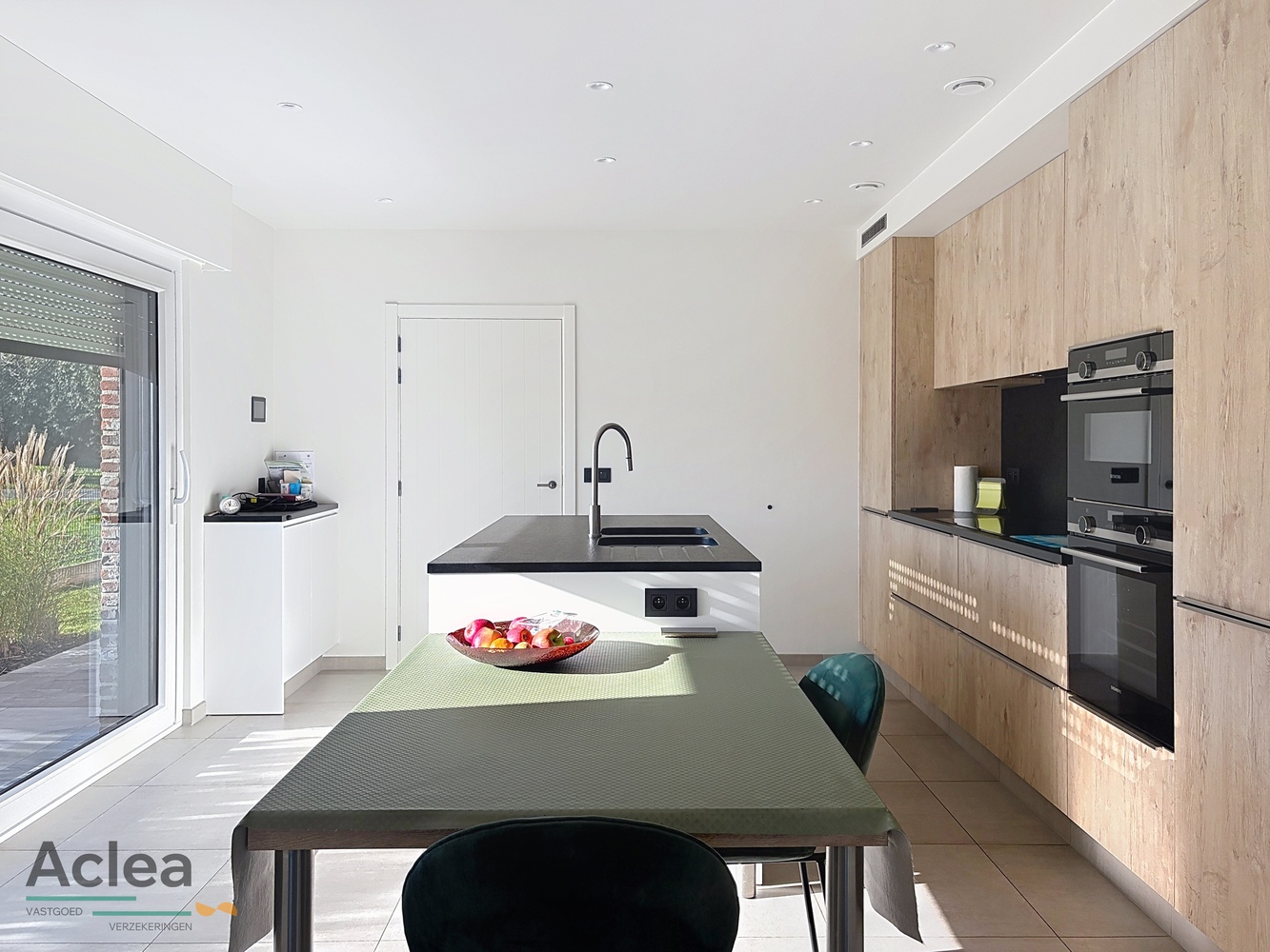 De moderne, volledig uitgeruste keuken met stijlvol kookeiland biedt alle comfort voor wie graag kookt en gezellig samen is. Aansluitend bevindt zich een praktische berging. Op het gelijkvloers vind je bovendien een badkamer met douche en lavabo, een ruime garage met plaats voor twee wagens, én een extra kamer die perfect kan dienen als bureau of hobbyruimte.