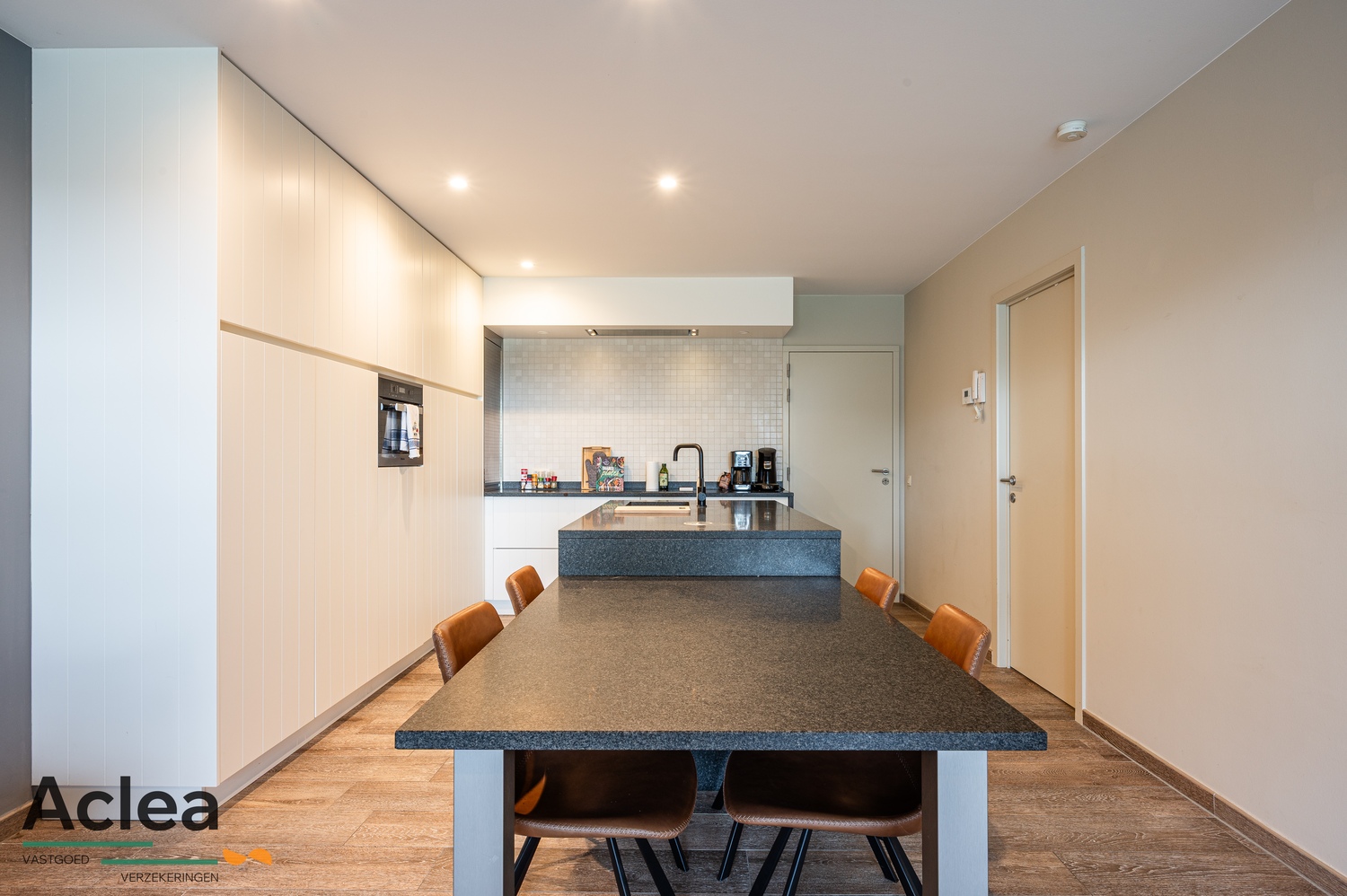 – volledig geïnstalleerde open keuken met alle toestellen, veel kastruimte en granieten werkblad