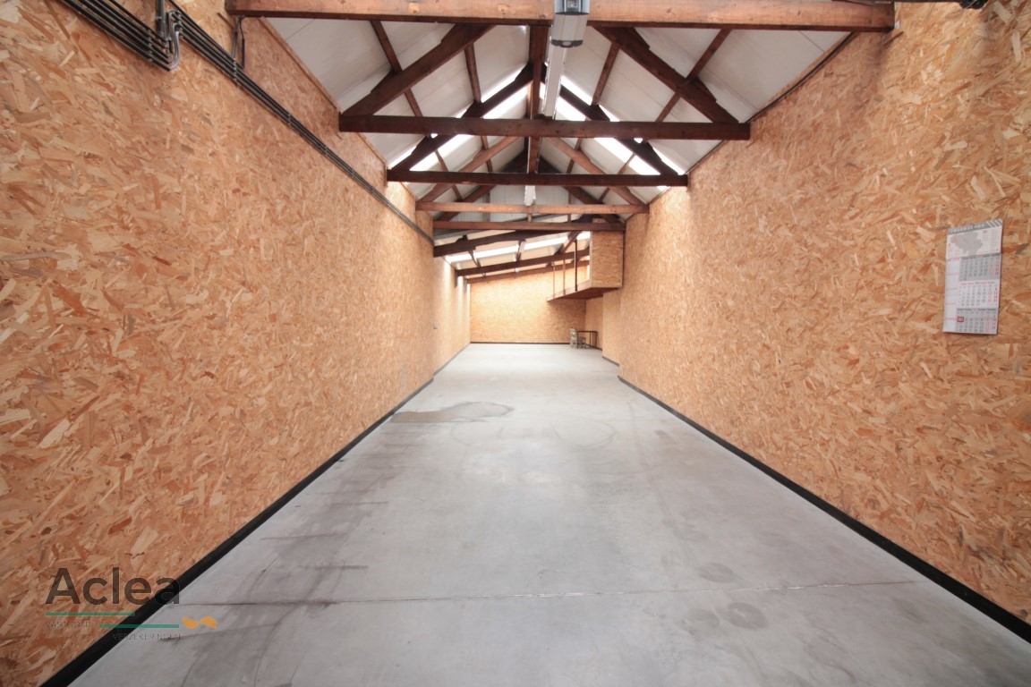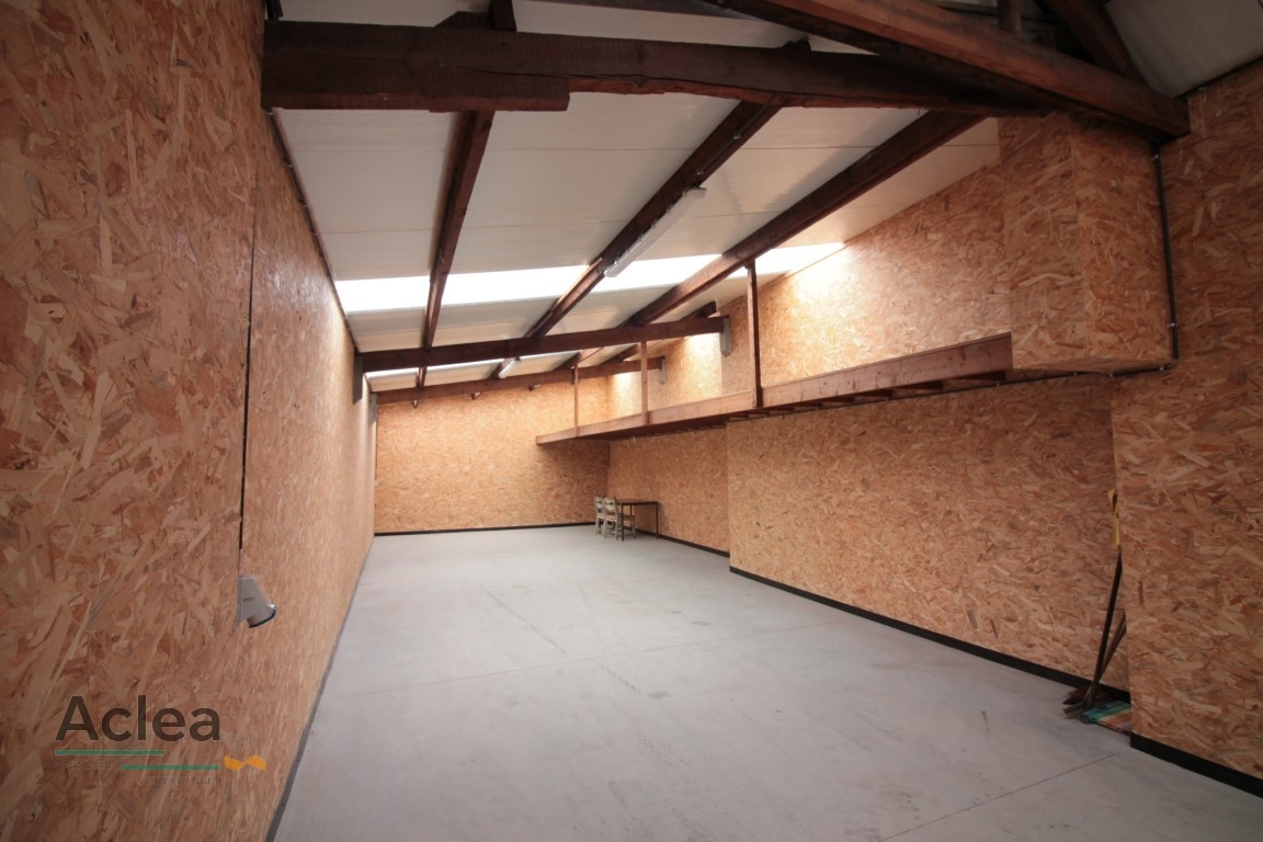 deze ruime afgewerkte loods (125m²) is gelegen in het centrum achteraan de woning Dorpsstraat 94