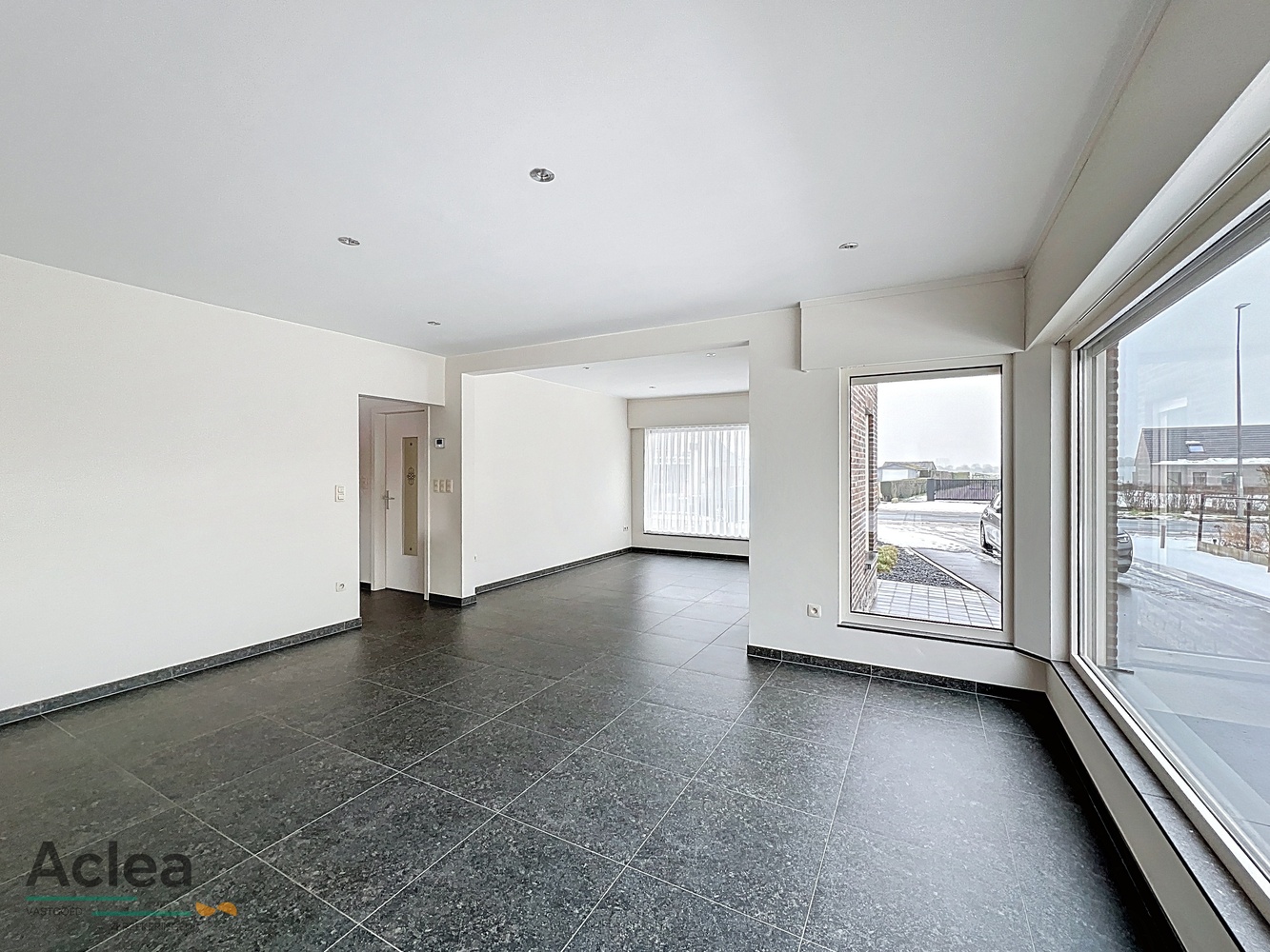 – ruime lichtrijke leefruimte met grote raampartijen, voorzien van automatische rolluiken