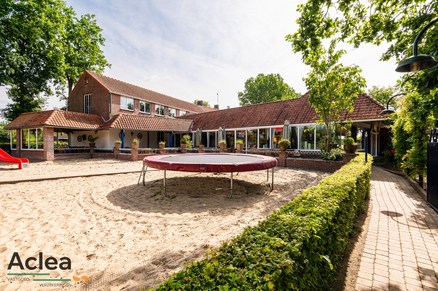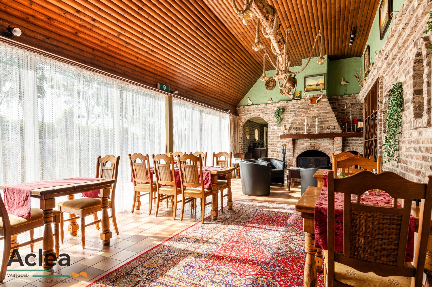 Binnenin vinden we ongeveeer 200 zitplaatsen die verdeeld zijn over het restaurant en de feestzaal met daarnaast nog eens een ruim terras van 80 zitplaatsen. Vanop het terras is er zicht op de speeltuin voor kinderen. De ruimtes binnenin zijn makkelijk en flexibel in te delen naargelang de feesten of de service. Denk aan pensioenfeesten, huwelijksfeesten, familiefeesten of gezellige etentjes met vrienden of familie.
