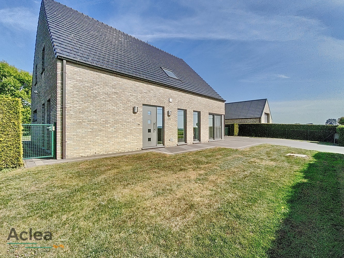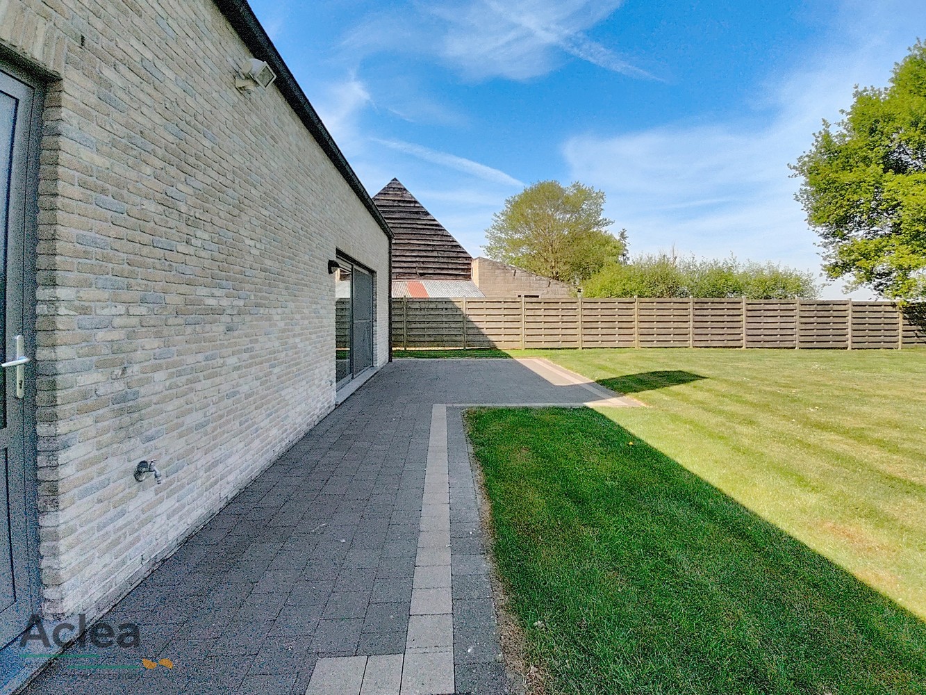 De woning heeft een ruime tuin en naastliggend een grote bergplaats met sectionale poort.
