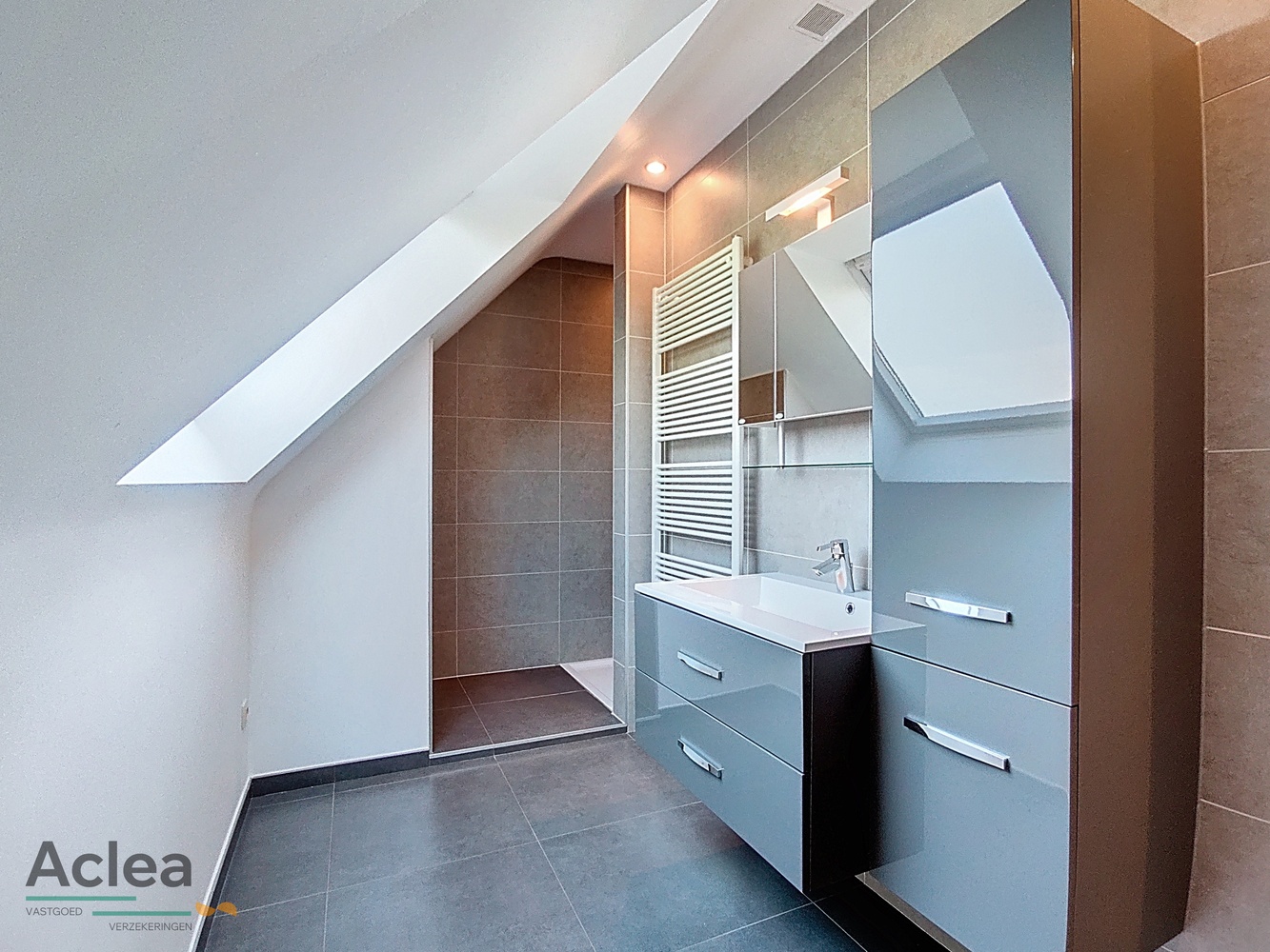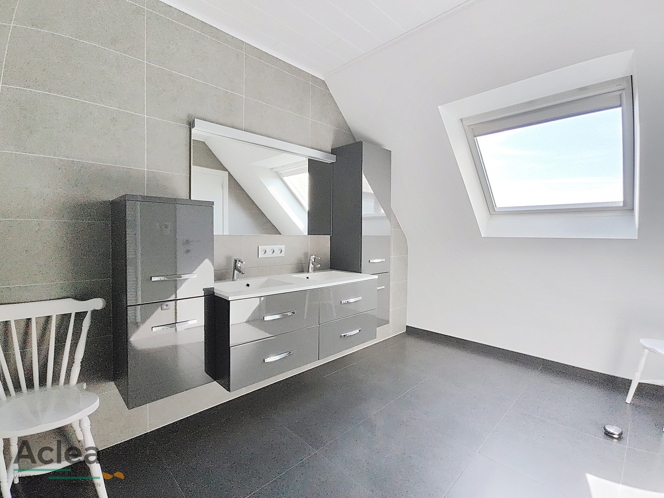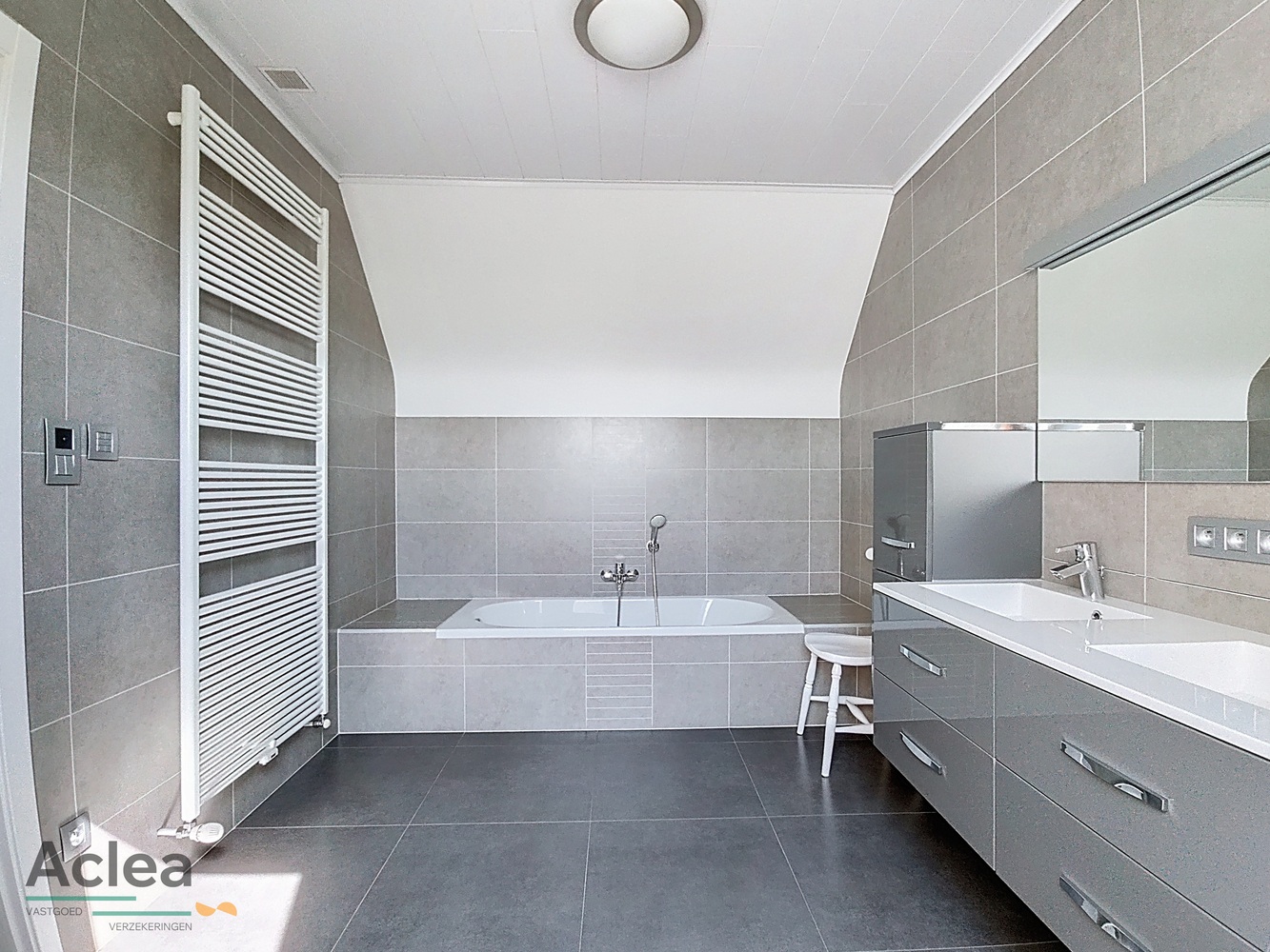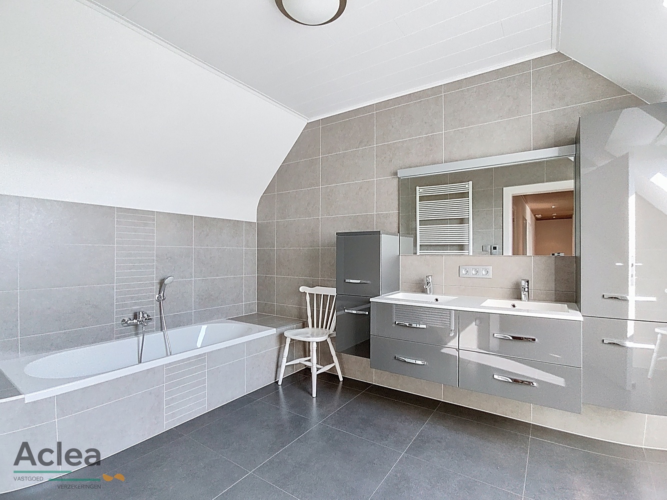 Op het eerste verdiep is er een nachthal, 1 hele ruime tweepersoonskamer met aanpalende dressing, 3 ruime slaapkamers, 1 badkamer met douche en lavabomeubel, een apart toilet en 1 badkamer met ligbad en lavabomeubel en een zolder.