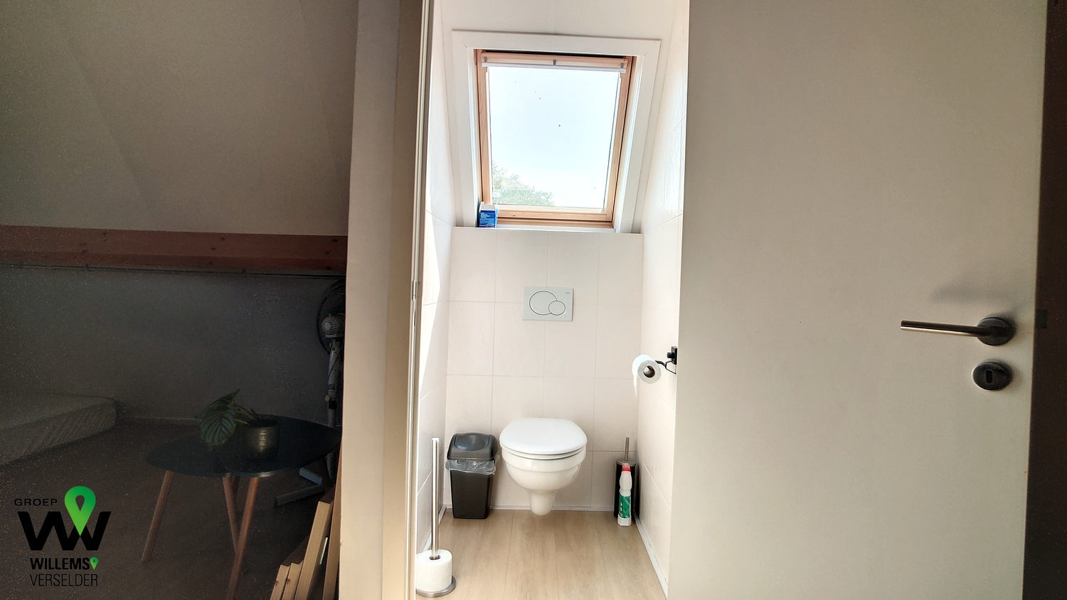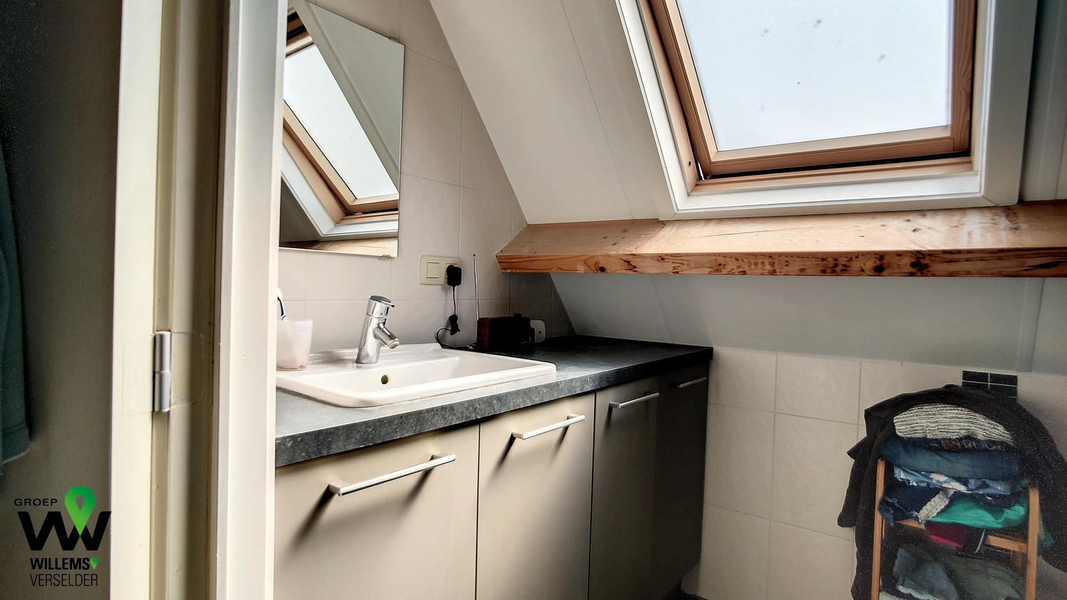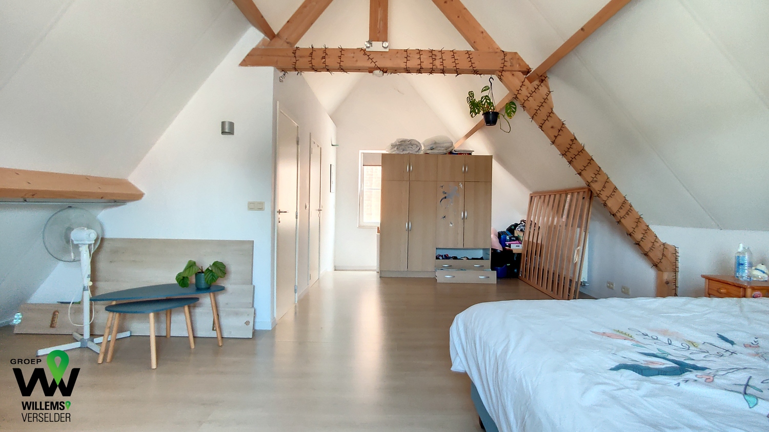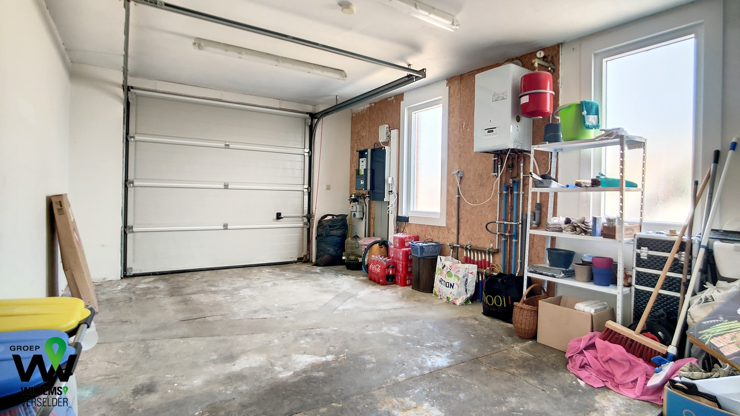 Indeling : inkom, living, ingerichte keuken, berging, toilet, ruime garage, 1 slaapkamer beneden, 1 heel ruime slaapkamer boven, toilet boven, badkamer met douche en lavabomeubel, aparte parkeerplaats naast de woning, terras en ruime tuin met mooi zicht.