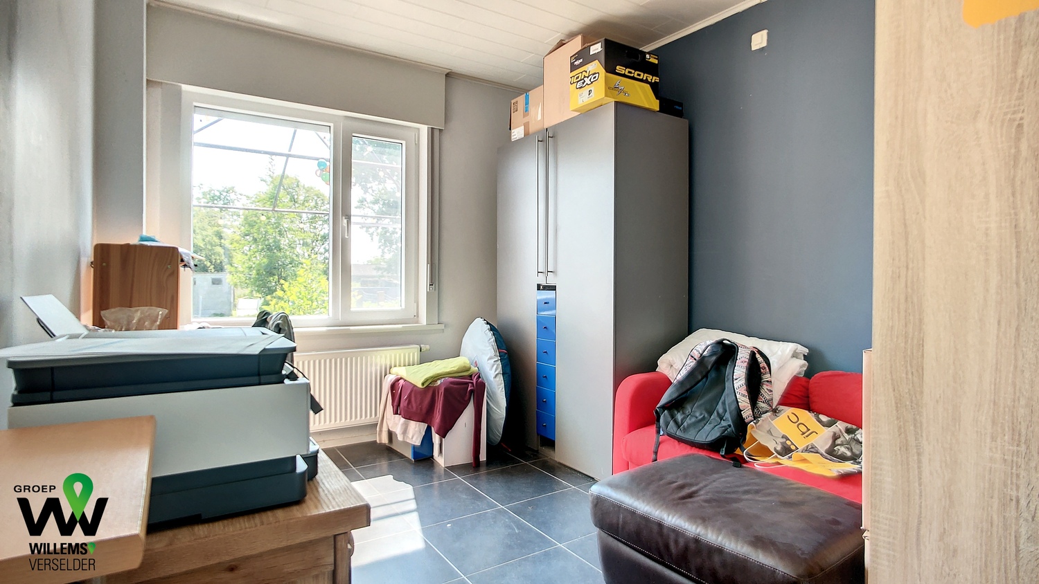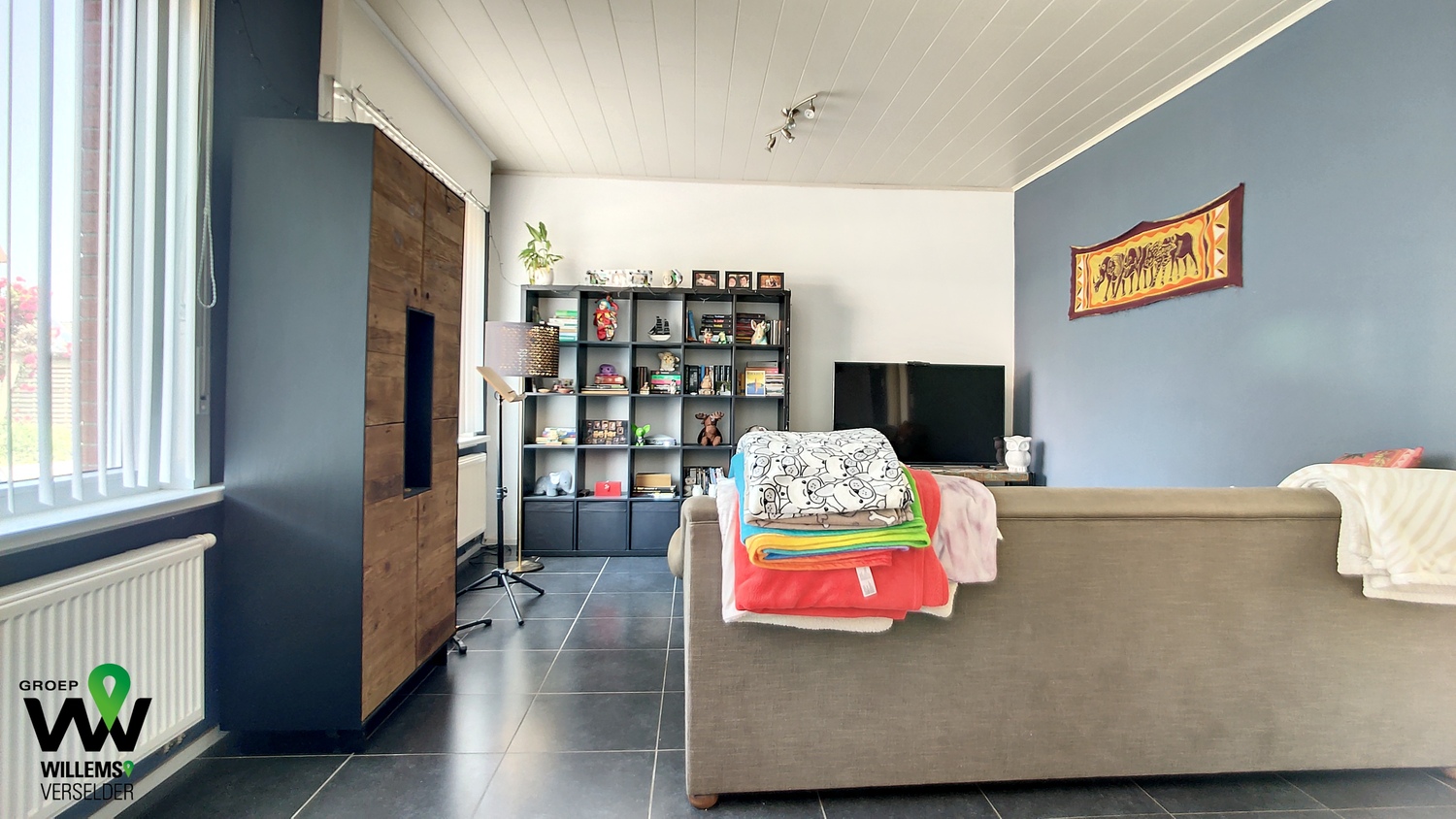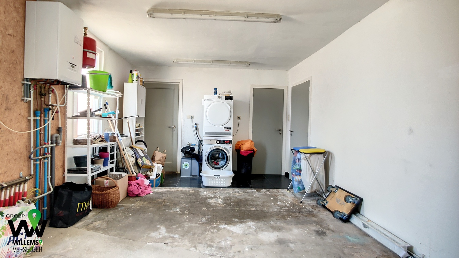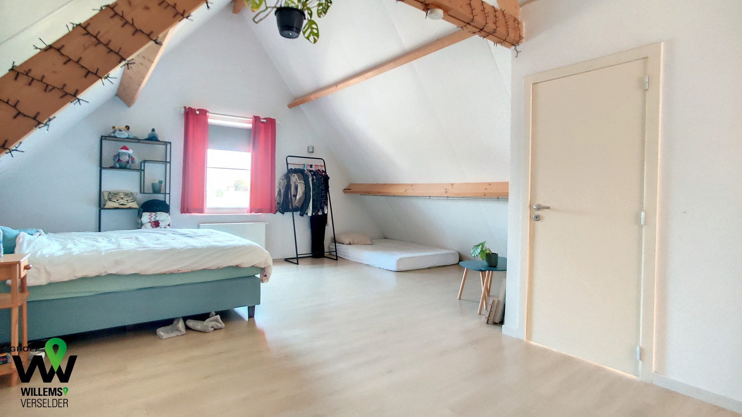 Indeling : inkom, living, ingerichte keuken, berging, toilet, ruime garage, 1 slaapkamer beneden, 1 heel ruime slaapkamer boven, toilet boven, badkamer met douche en lavabomeubel, aparte parkeerplaats naast de woning, terras en ruime tuin met mooi zicht.