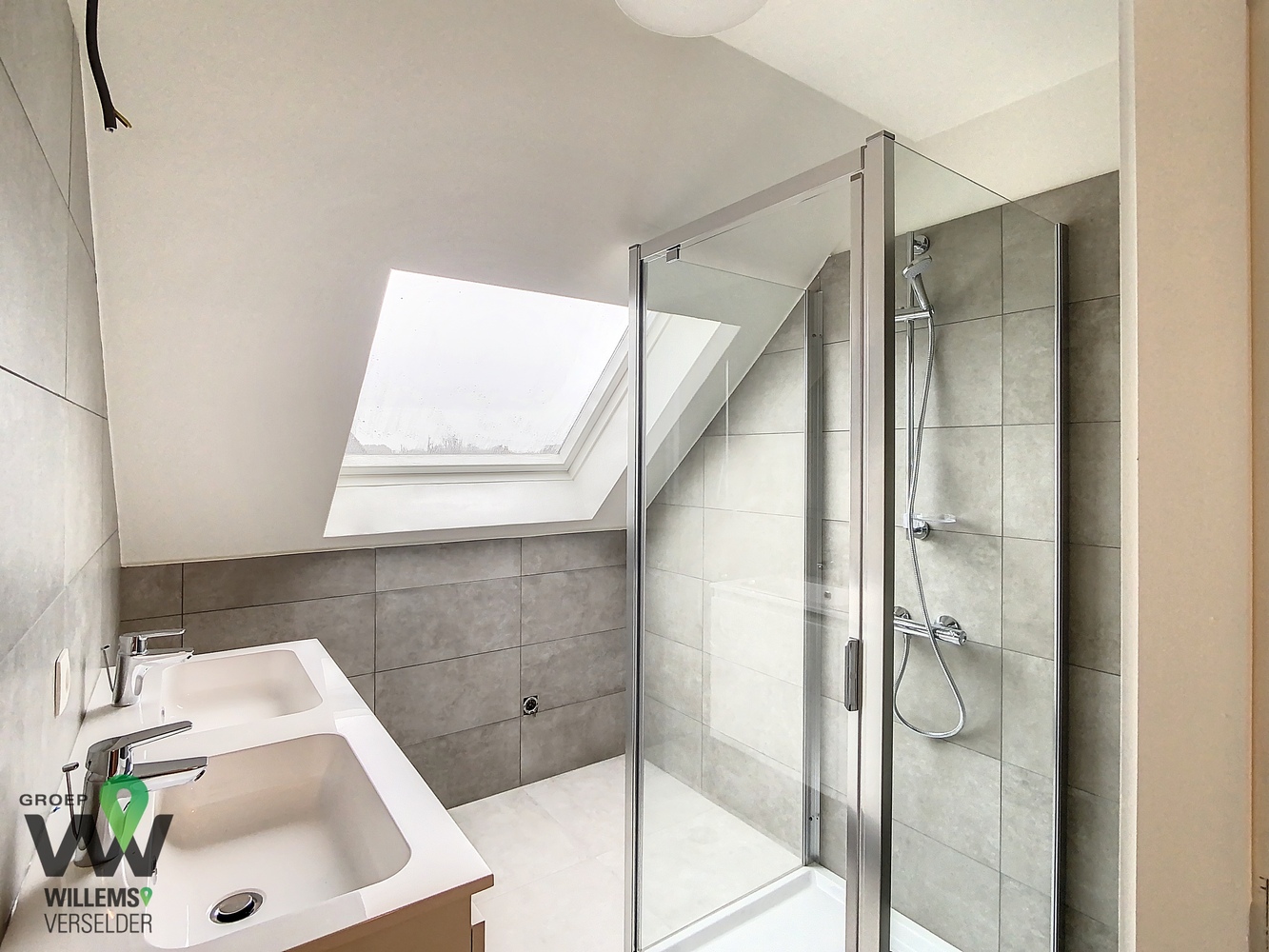 – vernieuwde badkamer met badkamermeubel, toilet en douchecabine