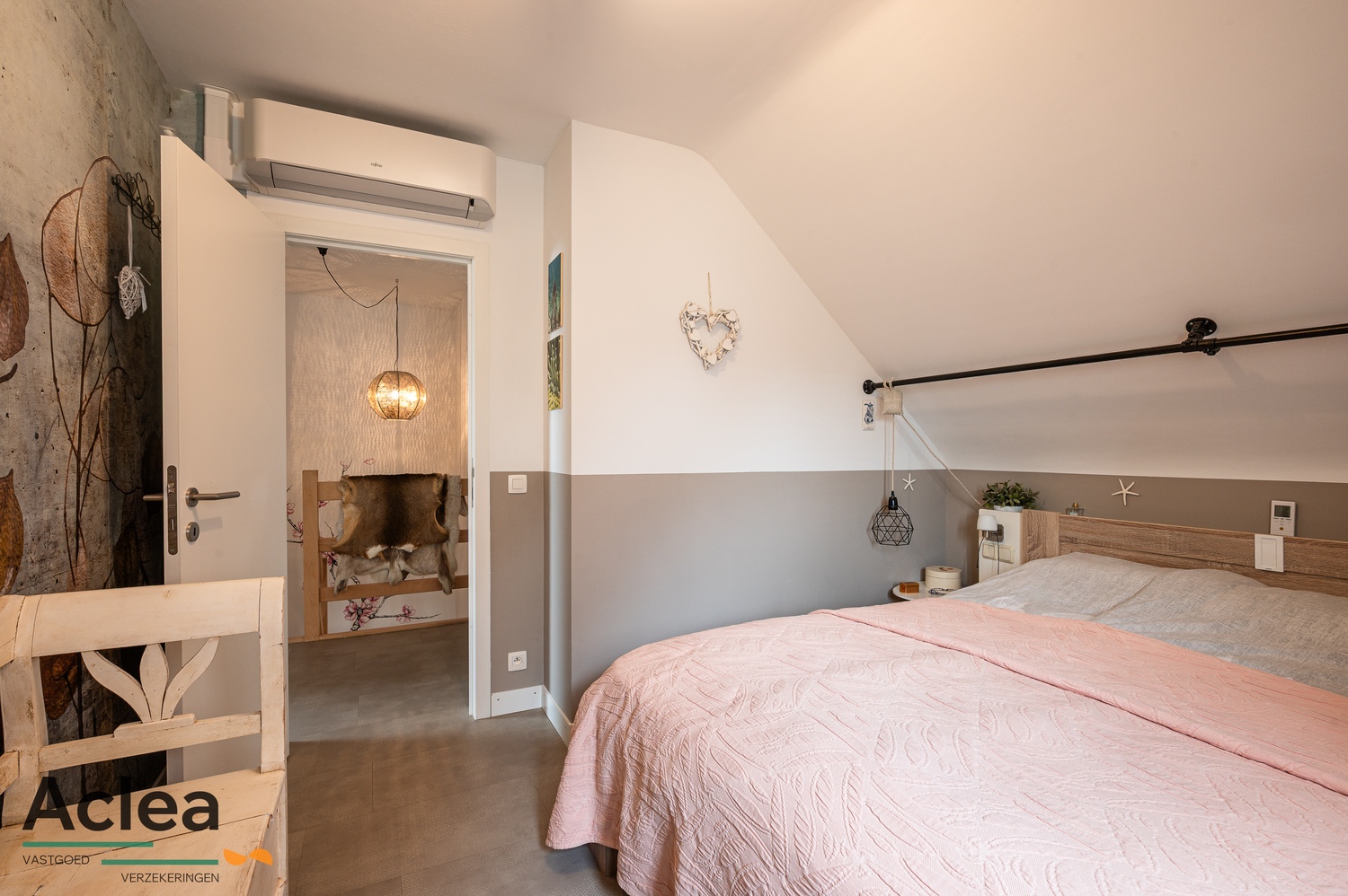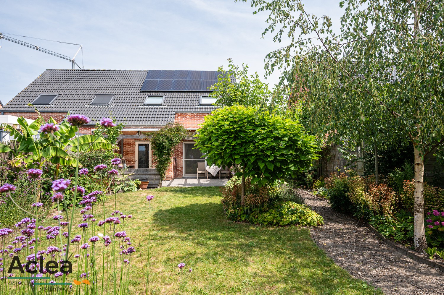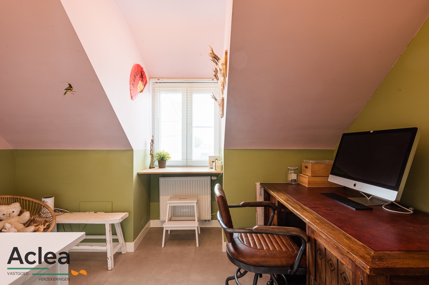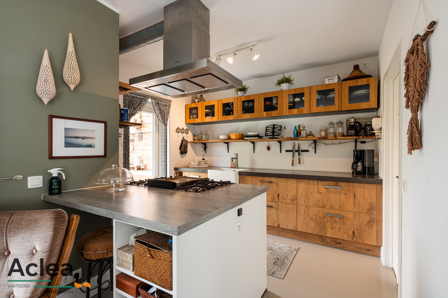 De woning beschikt over een A-label dankzij de energiezuinige CV-ketel op aardgas, in combinatie met zonnepanelen en een airco met warmtepomp in de slaapkamer. Op het gelijkvloers is er een lichtrijke open indeling met een prachtige keuken in landelijke stijl. Op het verdiep zijn er 2 grote slaapkamers, een kleine slaapkamer/bureau en een ruime badkamer.