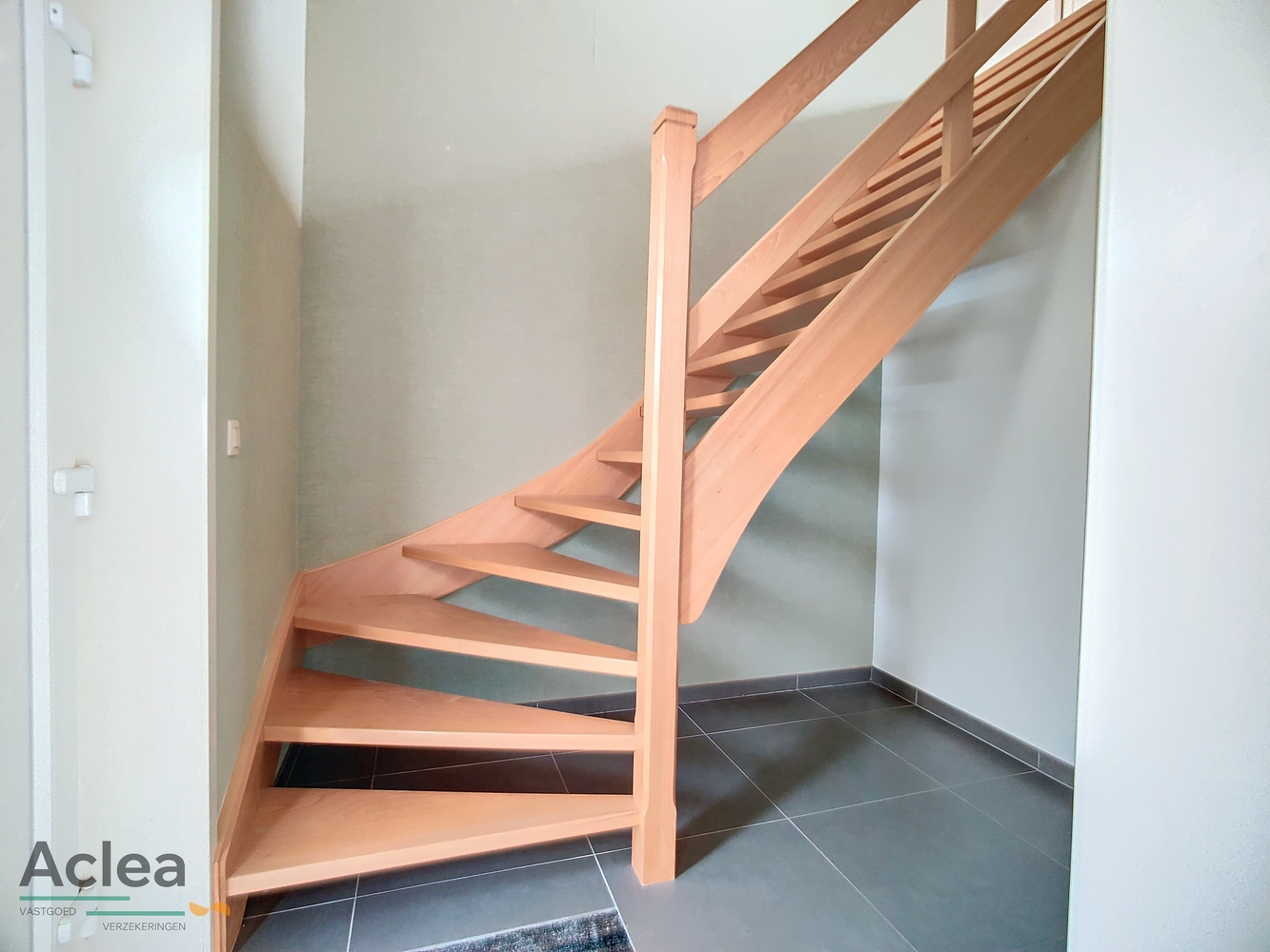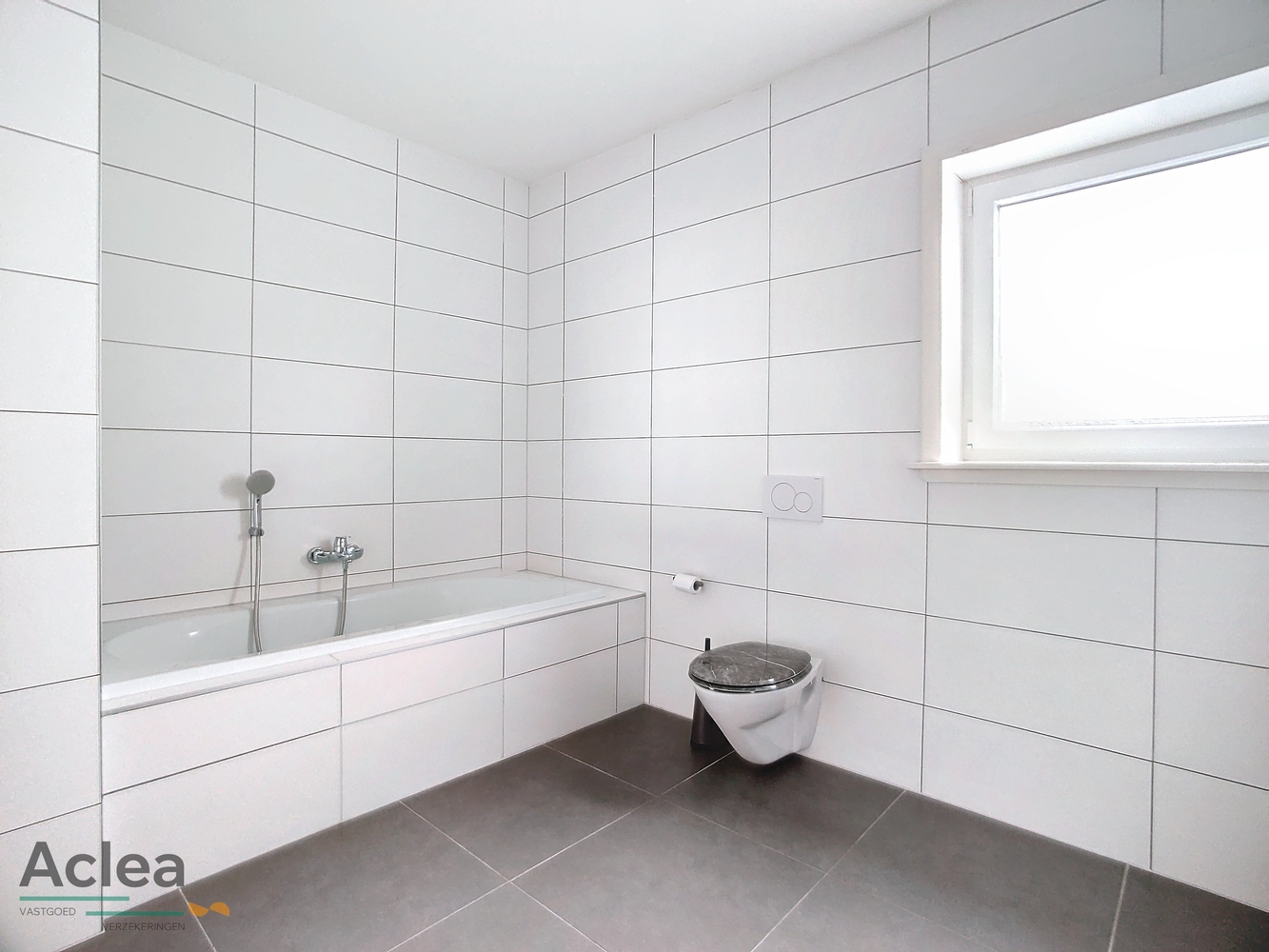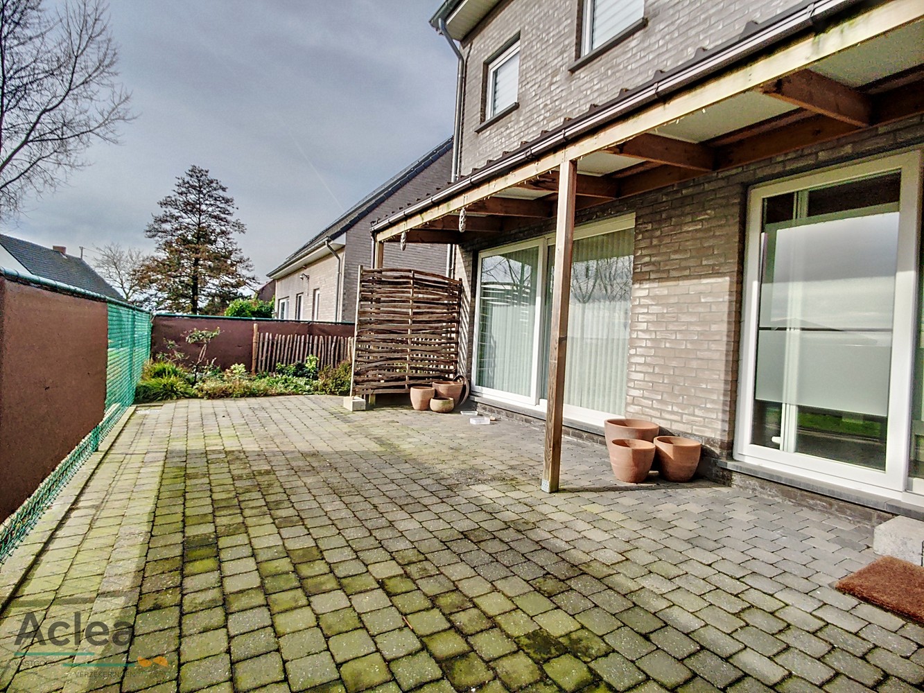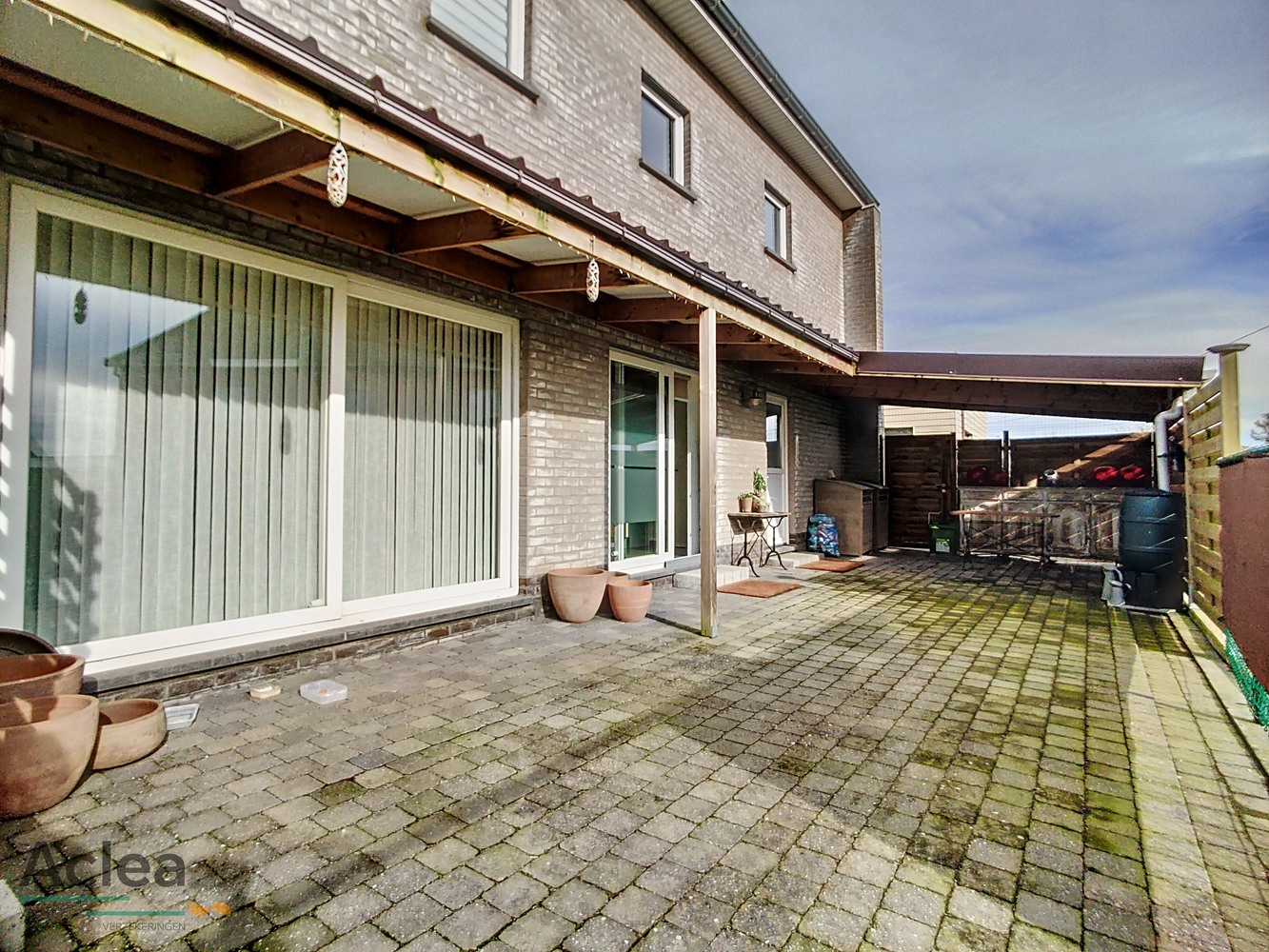 Inkom, toilet, living met open ingerichte keuken, achterinkom/wasplaats, inpandige garage, 3 ruime slaapkamers, bureau/berging, ruime badkamer met toilet, labavomeubel, douche en bad, ruim terras achteraan en parkeerplaats naast de woning.