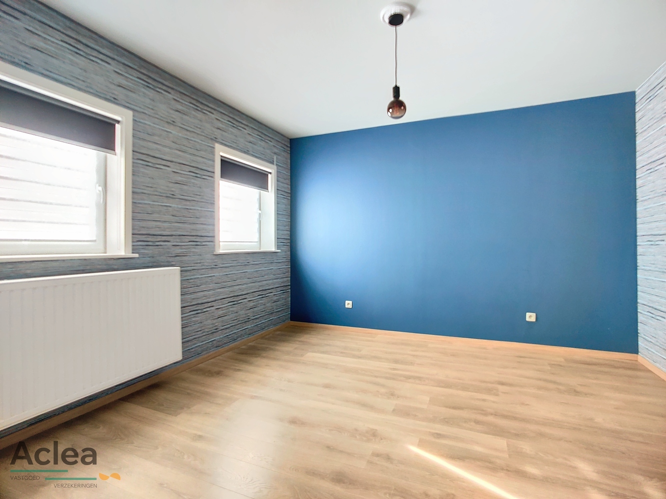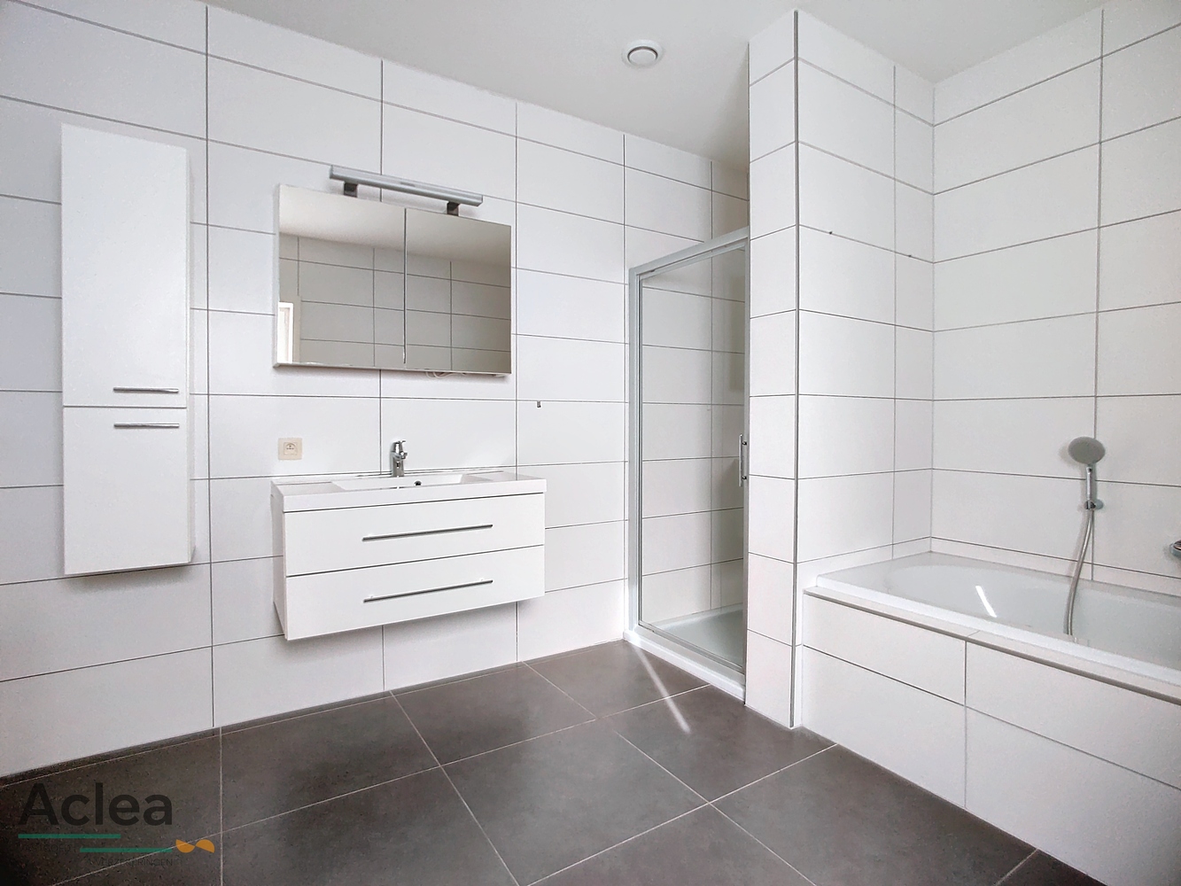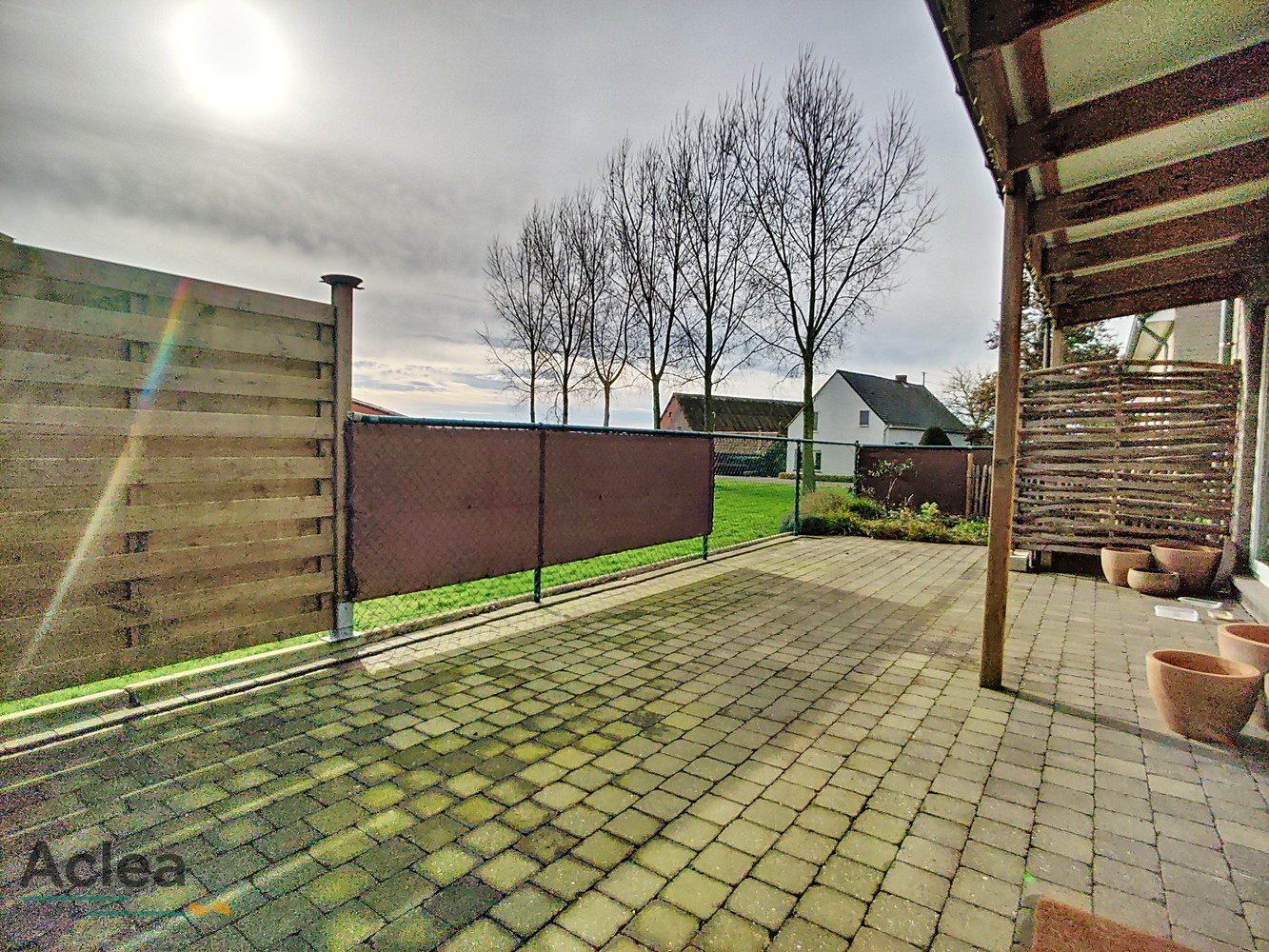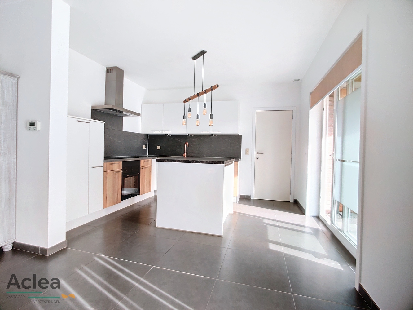 Inkom, toilet, living met open ingerichte keuken, achterinkom/wasplaats, inpandige garage, 3 ruime slaapkamers, bureau/berging, ruime badkamer met toilet, labavomeubel, douche en bad, ruim terras achteraan en parkeerplaats naast de woning.