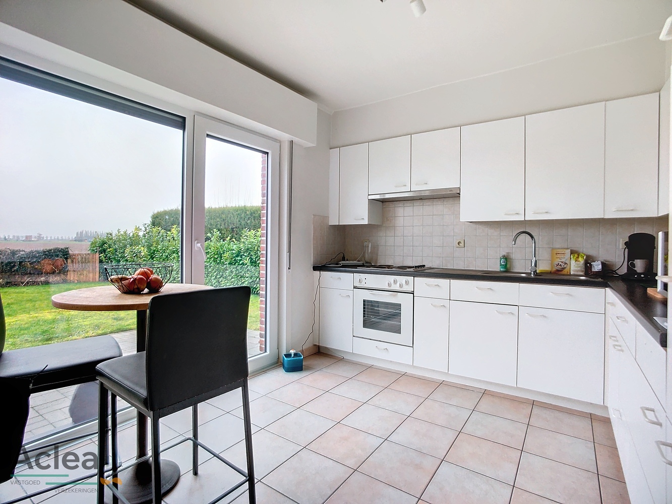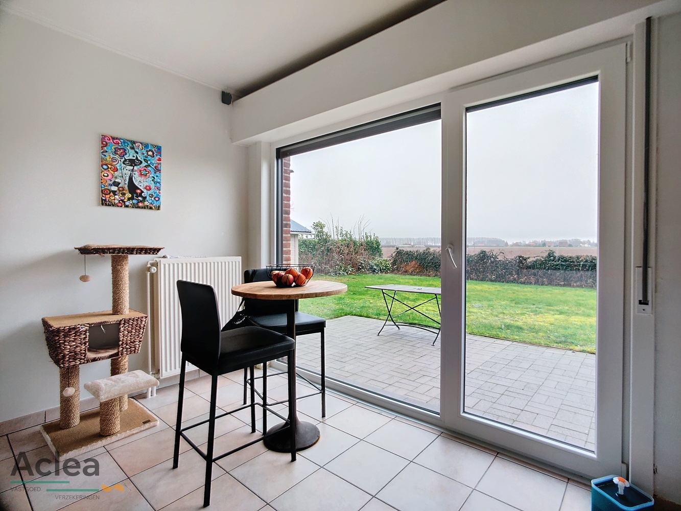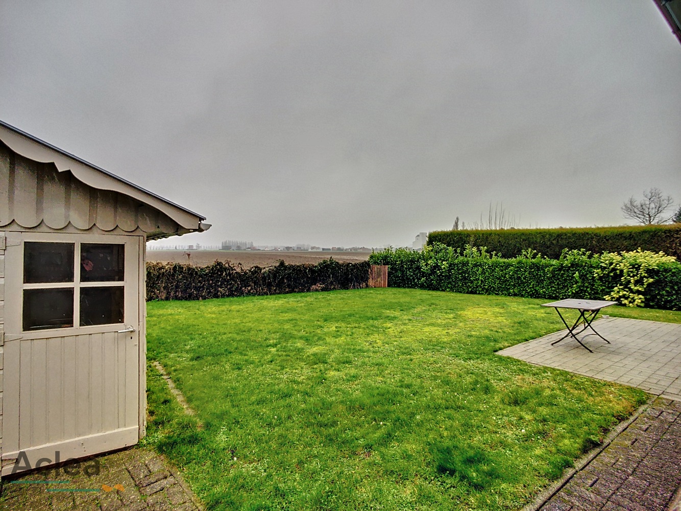 inkom, toilet, garage, lichtrijke woonkamer, ingerichte keuken met open zicht achteraan, badkamer met lavabomeubel, douche en toilet, 2 slaapkamers, ruime zolder, terras, tuinhuis en tuin met zicht op de polders