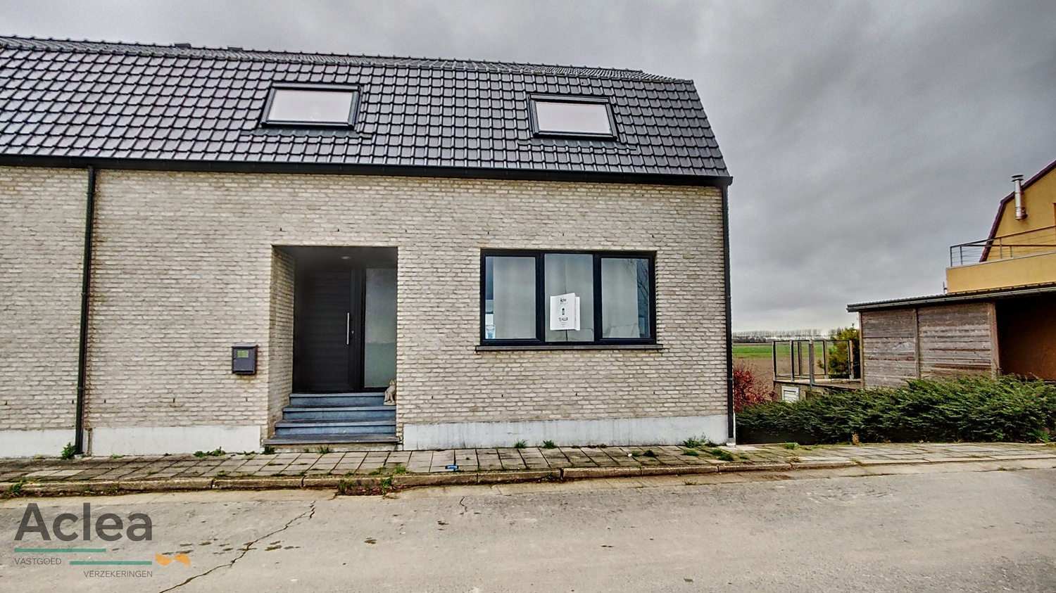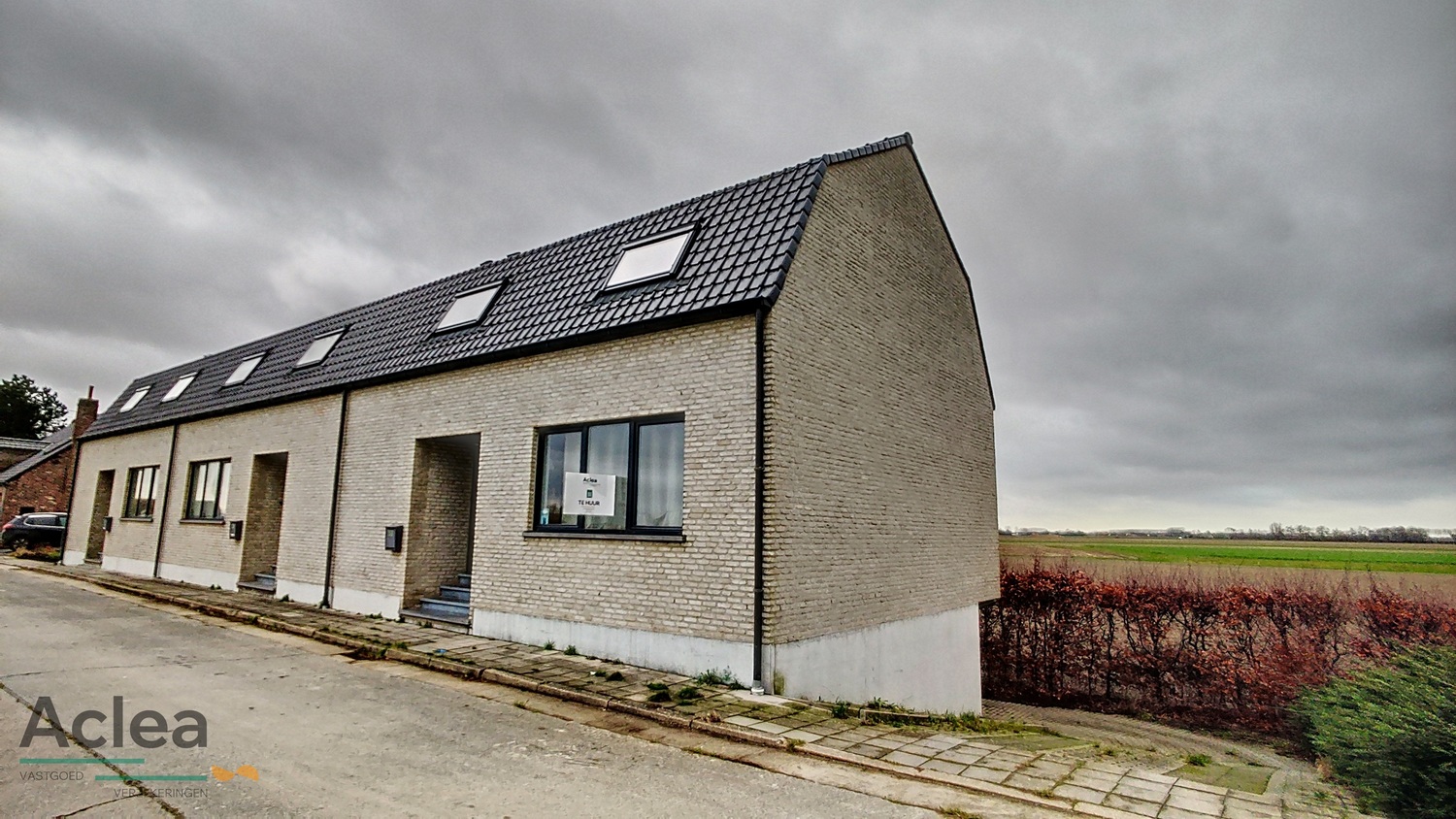 Indeling : inkom, toilet, living met open ingerichte keuken, terras achteraan met wijd zicht over de polders, badkamer met lavabomeubel, toilet en douche, 3 slaapkamers en ruime dubbele garage onder de woning met bergruimte