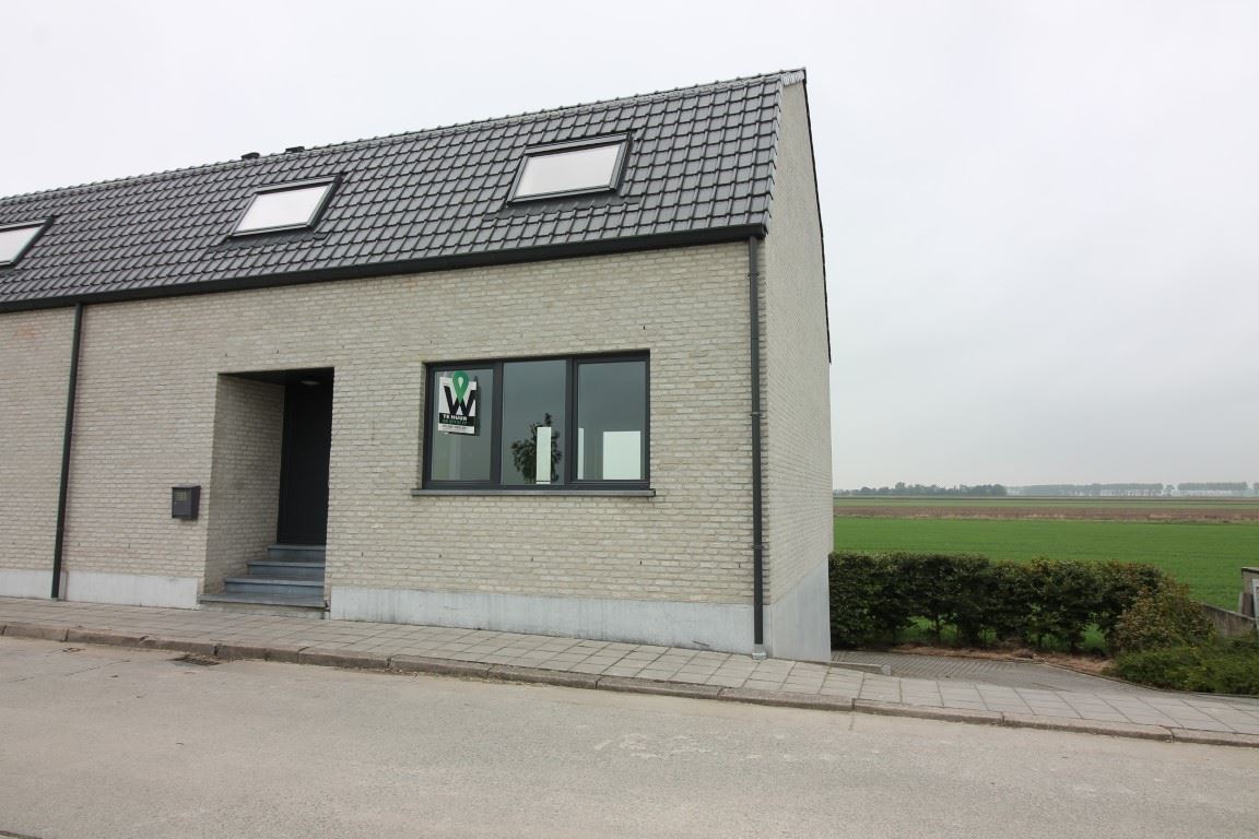 Indeling : inkom, toilet, living met open ingerichte keuken, terras achteraan met wijd zicht over de polders, badkamer met lavabomeubel, toilet en douche, 3 slaapkamers en ruime dubbele garage onder de woning met bergruimte