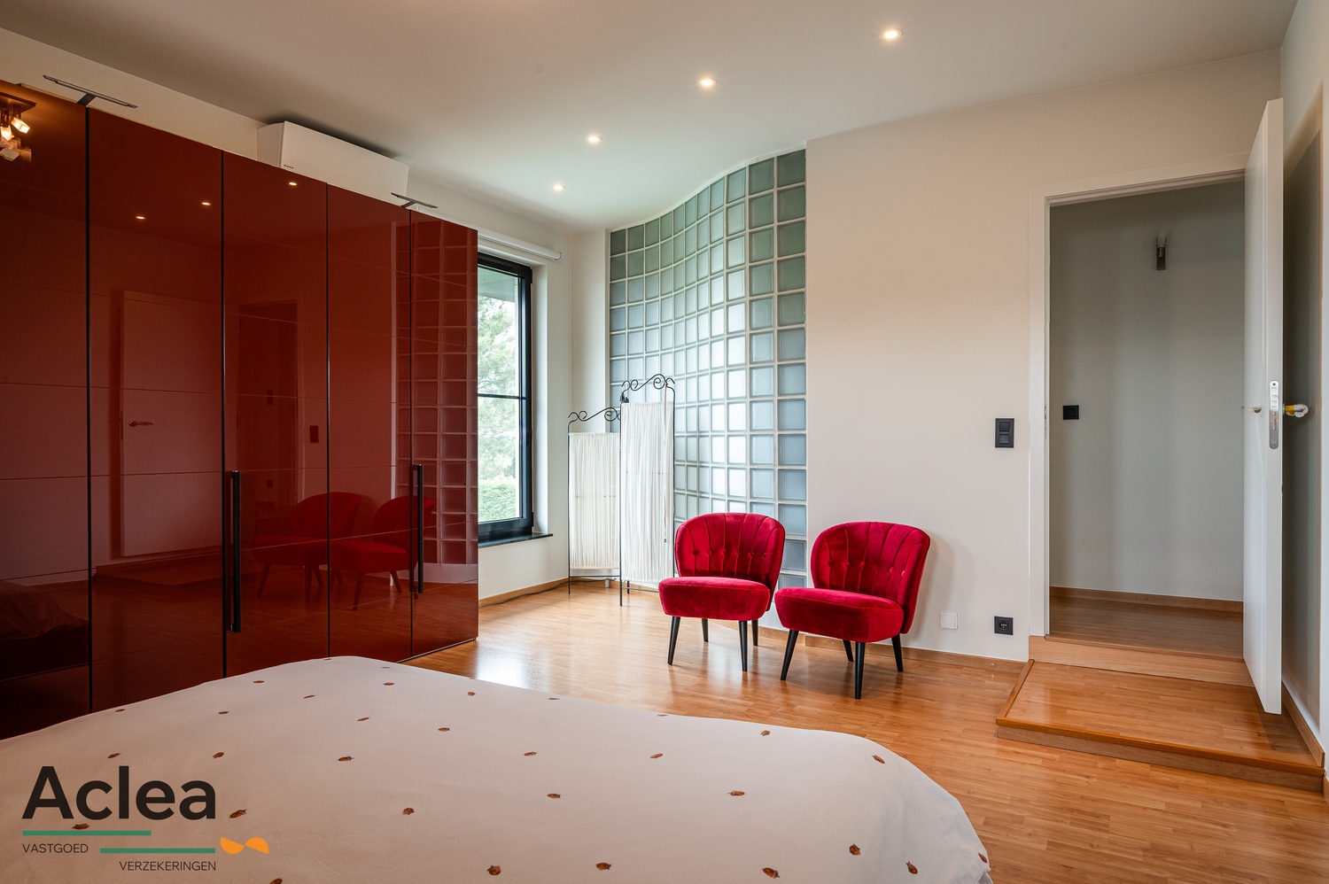 Op de verdieping vinden we maar liefst 4 volwaardige slaapkamers (waarvan 1 momenteel is ingericht als dressing) en een zeer ruime badkamer met ligbad. Op het gelijkvloers is er ook nog een mooie doucheruimte met toilet.