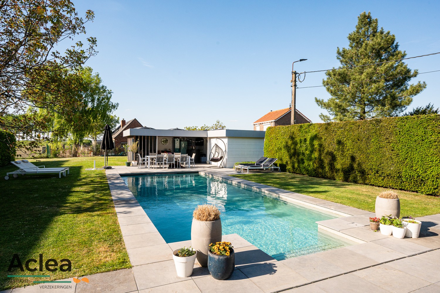 – ruime afgesloten tuin met grote terrassen, poolhouse en verwarmd zwembad