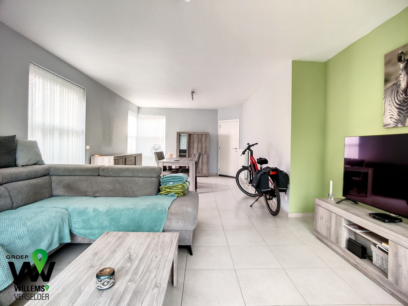 – lichtrijke living voorzien van lamellen