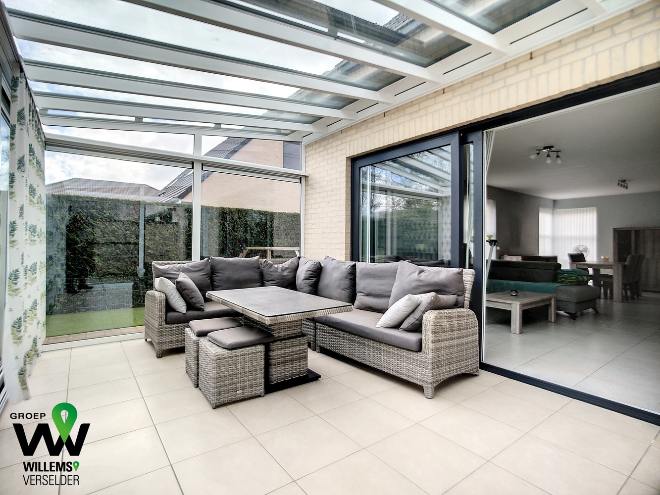– zonnige veranda met zicht op tuin