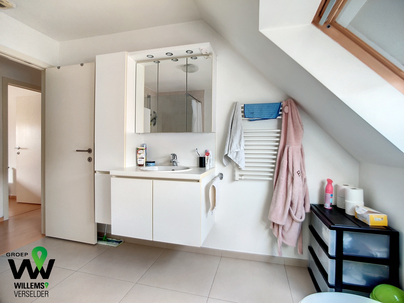 – ruime badkamer voorzien van inloopdouche, toilet en badkamermeubel