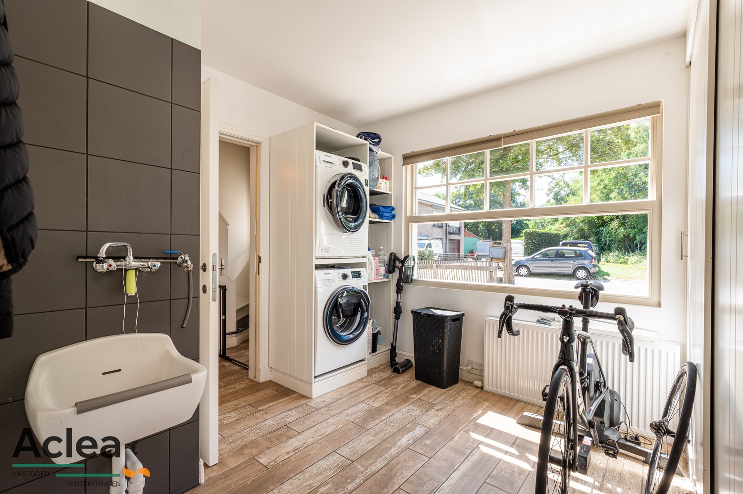 Binnenin vind je een gezellige eet- en leefruimte met veel lichtinval, een volledig ingerichte keuken met aansluitend een kelder die kan dienen als berging. Verder is er nog een gastentoilet en een ruime berging met de nodige aansluitingen en een geïnstalleerde douchecabine.