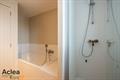 | moderne badkamer met ligbad, douchecabine, toilet en badkamermeubel | |
