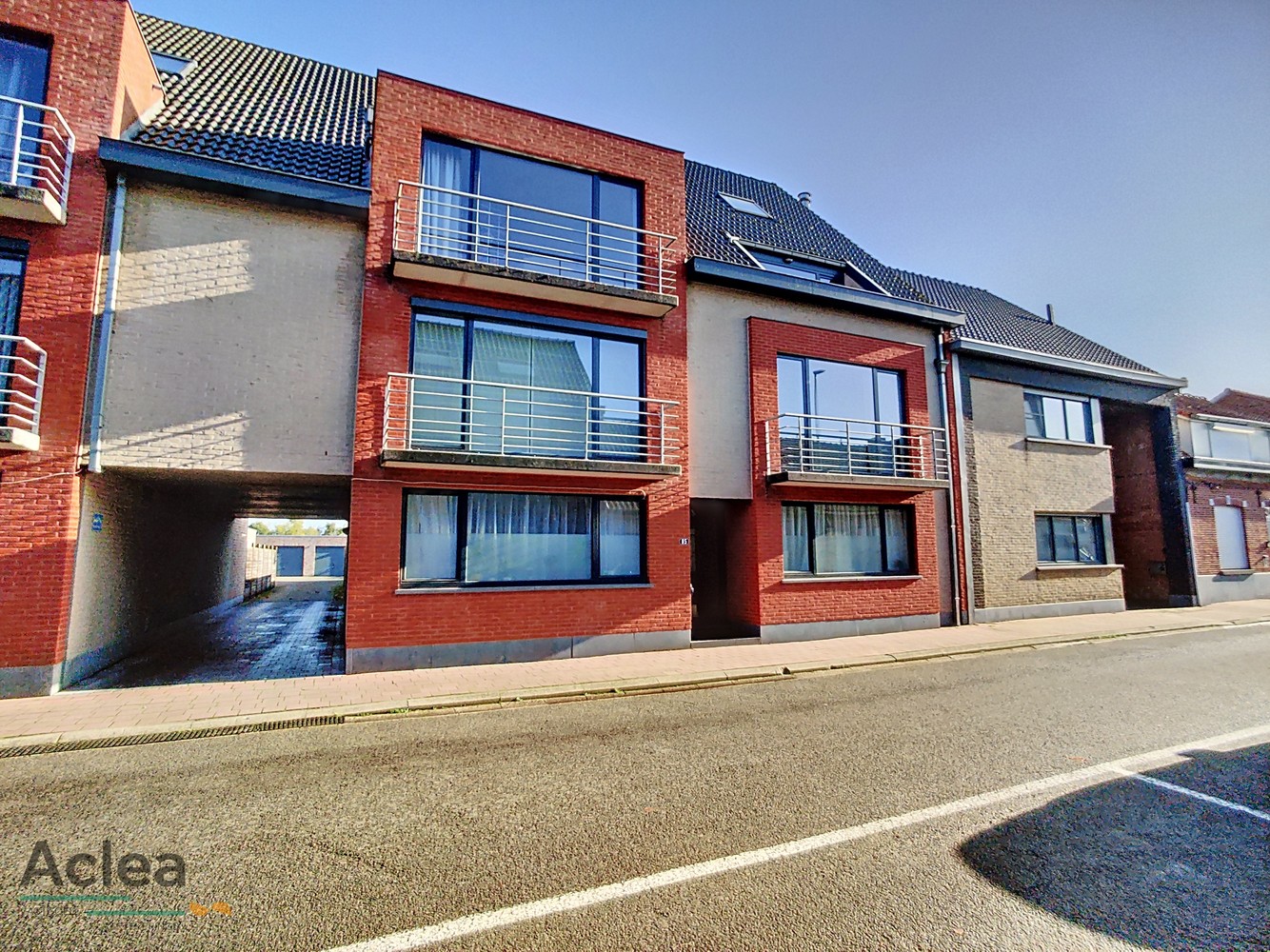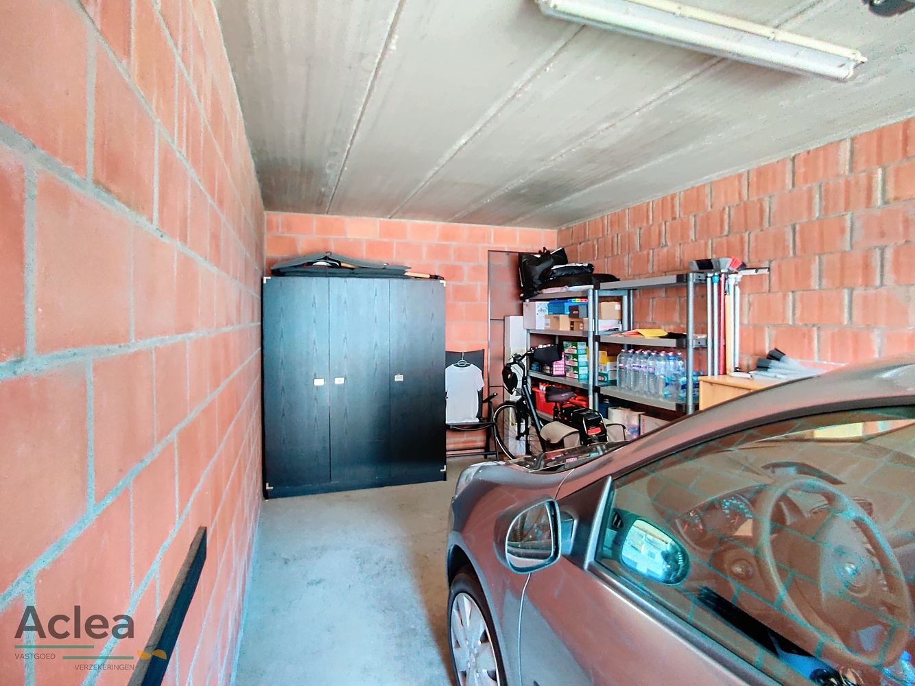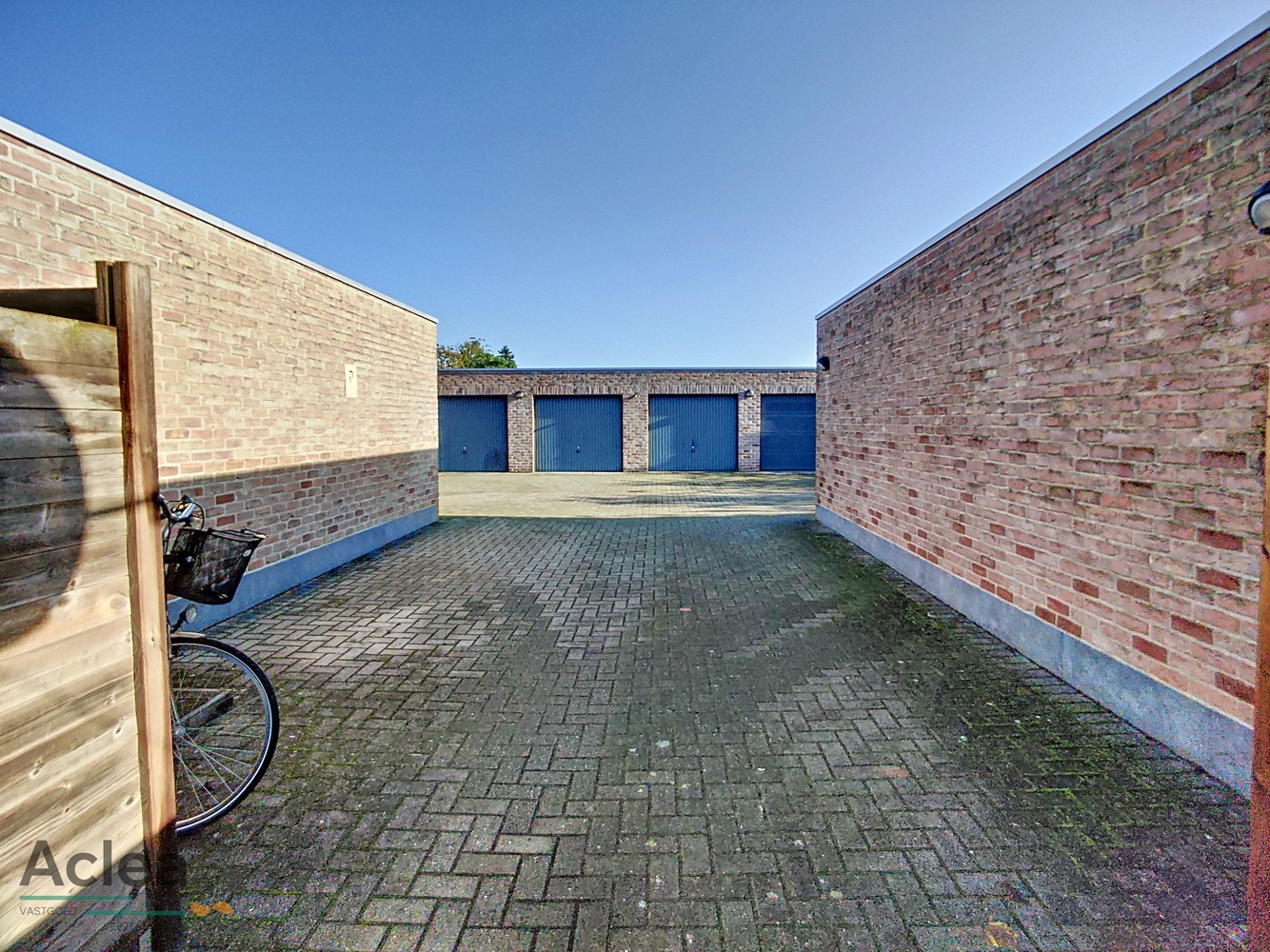 Indeling : inkom, toilet, living met open ingerichte keuken, berging, badkamer met lavabo en ligbad met douchescherm, twee slaapkamers achteraan, terras achteraan en achteraan het gebouw een ruime garage